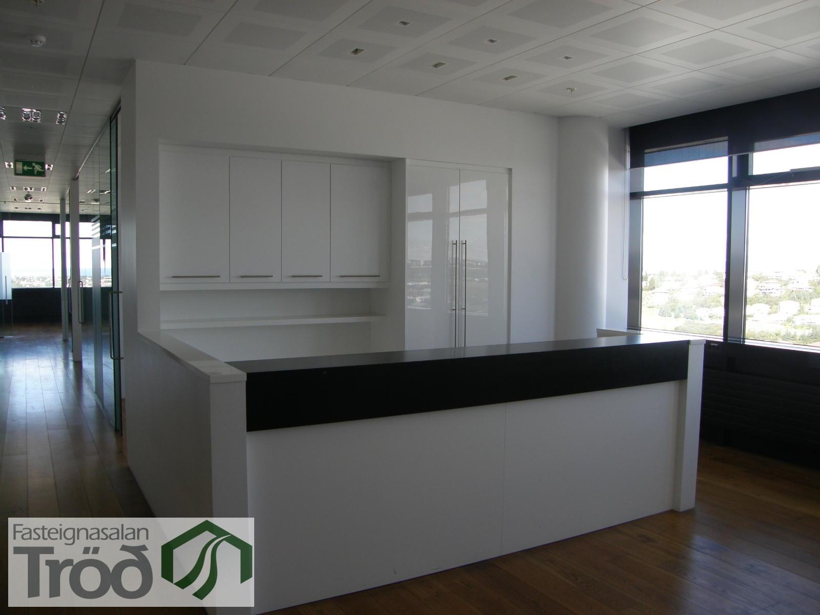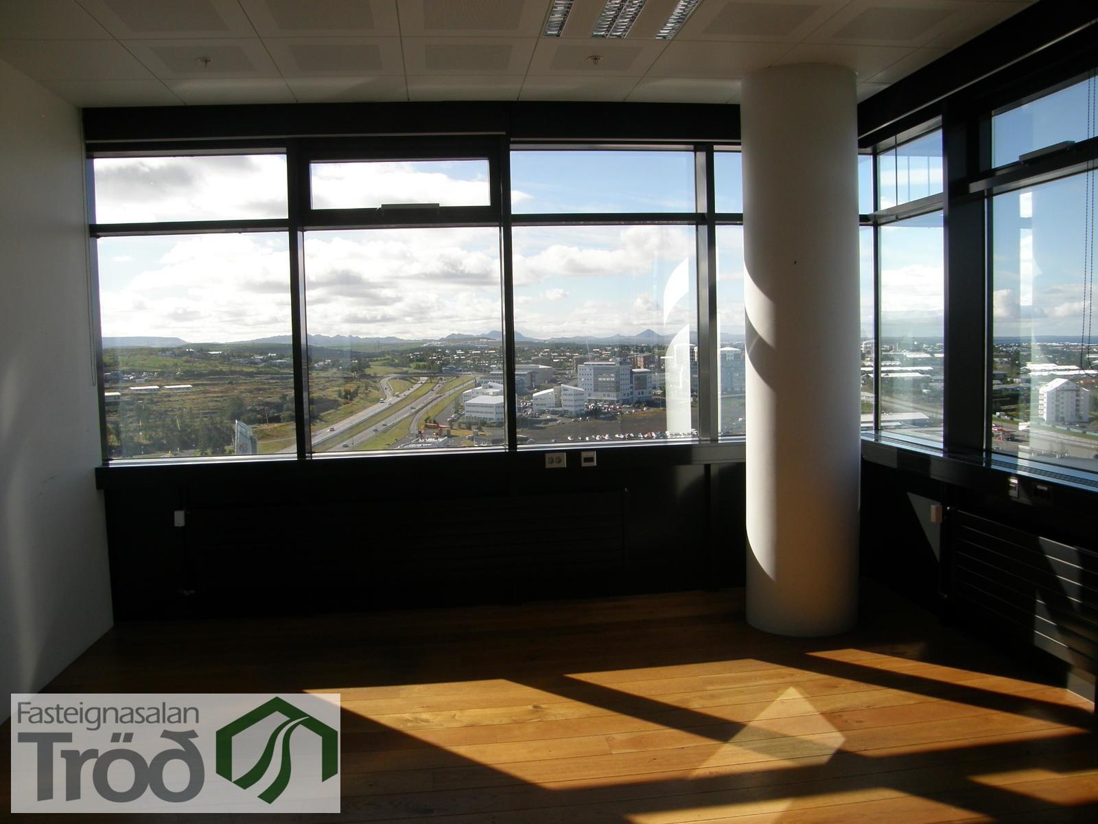 Glæsileg 320 fm skrifstofuhúsnæði á 17. hæð með útsýni til norðurs, austur og suðurs á þessum vinsæla stað í Turninum. Hæðin er fullinnréttuð með blöndu af herbergum og opnum rýmum, innréttuð með glerveggjum og gegnheilu parketi á gólfum. Til afhendingar strax, eða eftir samkomlagi . Niðurtekin loft með innfelldri lýsingu og kæliröftum. Tölvulagnir í stokkum. Snyrtingar í sameign sumra. Í miðkjarnanum eru 6 hraðskreiðar lyftur sem þjóna turninum og ganga frá bílakjallara hússins upp á 20. hæð. Bílakjallarinn rúmar 450 bíla og er þannig gert ráð fyrir að allir starfsmenn í húsinu hafi aðgang að bílastæði í bílakjallara. Að auki eru rúmlega 200 stæði á opnu bílaplani á jarðhæð hugsað fyrir viðskiptavini. Á jarðhæð hússins er móttaka með tveimur starfsmönnum sem stýra aðgangi að fyrrtækjum í skrifstofum í byggingunni. Hafið samband við sölumenn okkar í síma 511 2900 og pantið skoðun, eða fáið frekari upplýsingar.