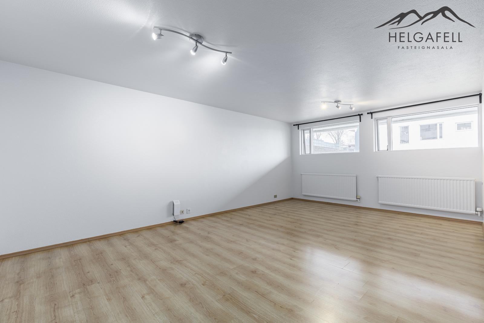 Íbúðin er eitt svefnherbergi, stofa, baðherbergi og forstofa. Íbúðinni fylgir engin geymsla. Auk þess fylgir ekki þessari ósamþykktu íbúð afnotaréttur af sameign, þ.e. þvottahúsi, þurrkherbergi, barnavagna- og reiðhjólageymsla ásamt bílastæði.