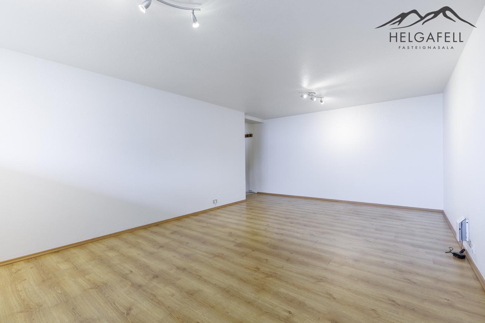Gangur: Flísar á gólfi og fatahengi. Stofa: Harðparket á gólfi. Eldhús: Rúmgott, með flísum á gólfi, góð eldhúsinnrétting. Flísar á milli efri og neðri skápa. Tengi fyrir uppþvottavél og þvottavél. Borðkrókur Baðherbergi: Steinteppi á gólfi, sturtuklefi og salerni. Svefnherbergi: Harðparket á gólfi. Góður laus skápur sem fylgir með.