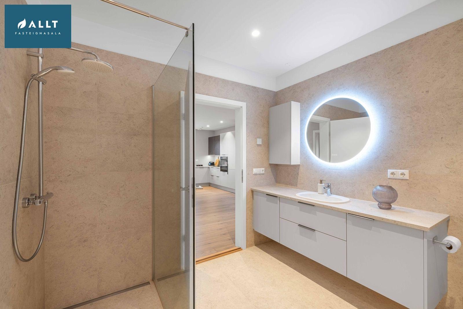 LED lýsing. Eignin er með tengjum fyrir tölvu og síma ásamt hitastilli í hverju rými fyrir gólfhitakerfi frá Rehau.