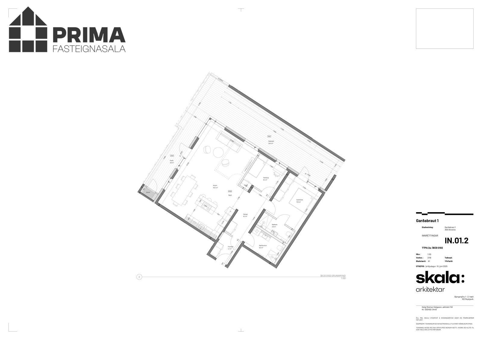 Fjölbýlishúsið að Garðabraut er staðsett í glæsilegu íbúðarhverfi í uppbyggingu á Akranesi. Byggingin er 4 og 7 hæðir með 50 íbúðum af fjölbreyttum stærðum og gerðum. Tvö stiga- og lyftuhús er í byggingunni þar sem annað er 4 hæðir og hitt 7 hæðir að viðbættum kjallara. Íbúð 101 hefur sérinngang að framan á norðurhlið hússins við bílastæði á 1.hæð. Á 1. – 7. hæð eru íbúðir af fjölbreyttum stærðum og gerðum, tveggja, þriggja og fjögurra herbergja. Í kjallara hússins er sameiginleg bílageymsla með sér bílastæðum fyrir 50 bifreiðar merktum íbúðum sem þau tilheyra ásamt því að aðgengi er að sér geymslum frá bílakjallara. Að auki eru í kjallara sérgeymslur fyrir hluta íbúða ásamt vagna- og hjólageymslu og sameiginlegum tæknirýmum í hverju stigahúsi fyrir sig. Aðalinngangur er staðsettur á 1. hæð. Eingöngu er notast við fyrsta flokks efni bæði innan- sem og utandyra. Léttir innveggir íbúða eru með sérvöldu gipsefni fyrir hvert rými og veggir sérgeymslna eru hlaðnir. Áhersla var lögð á gott skipulag, fallegt útlit, gæði og góða nýtingu. Eignin er afhent skv. nánari skilalýsingu.