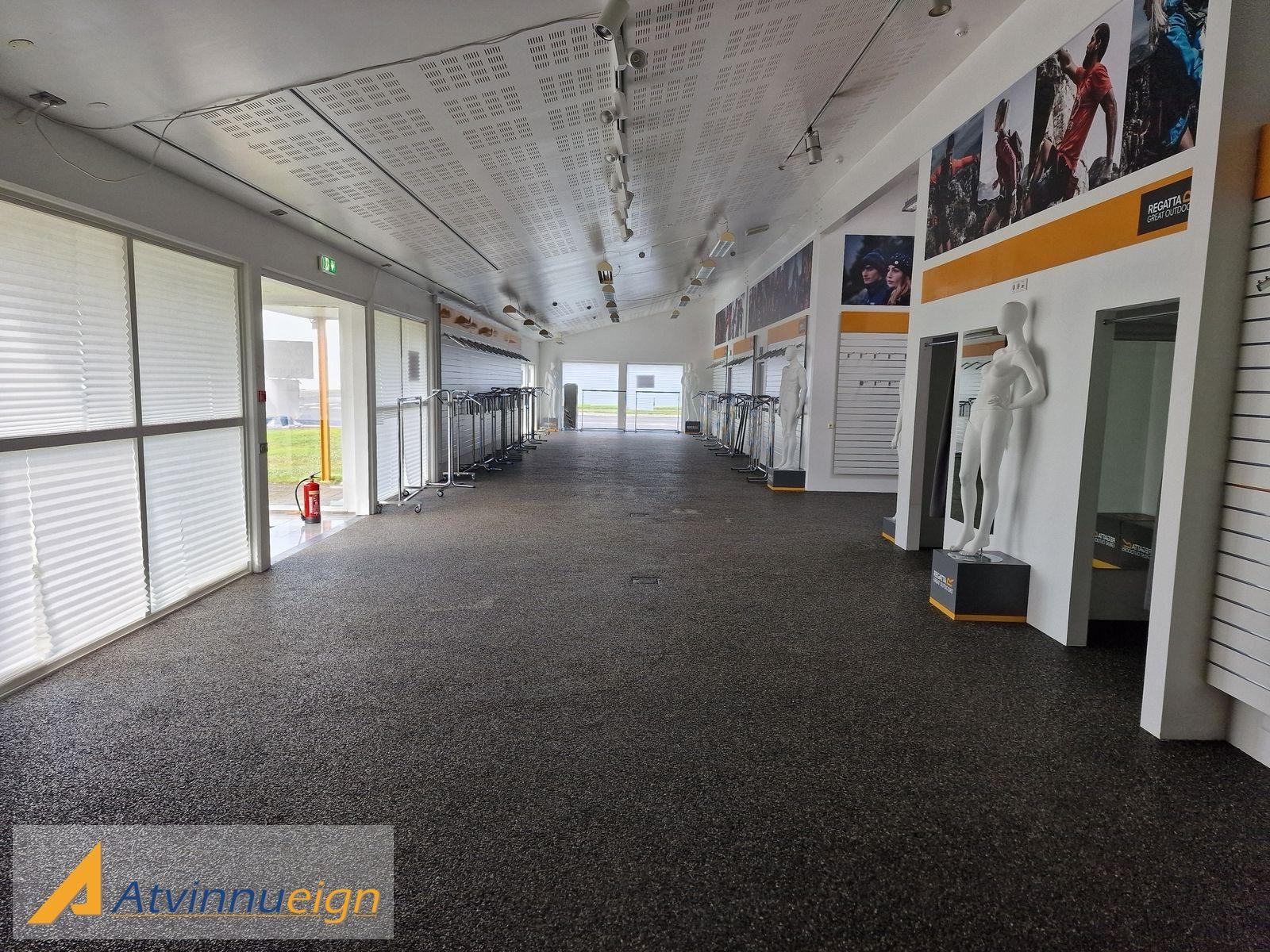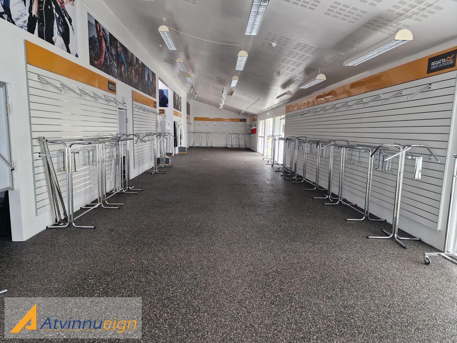 Um er að ræða gott atvinnuhúsnæði með miklum sýnileika. Húsnæðið skiptist í stórt og rúmgott verslunarrými, starfsmannaaðstöðu, eldhúsaðstöðu og snyrtingu með sturtu. Einnig eru tvær lokaðar skrifstofur, fundarherbergi og lager-/verkstæðisrými. Hæð á innkeyrsluhurð er um 2.3 metrar. Innréttingar, snagar og annað getur fylgt með eigninni. VSK bætist EKKI við leiguverð. Laust strax.