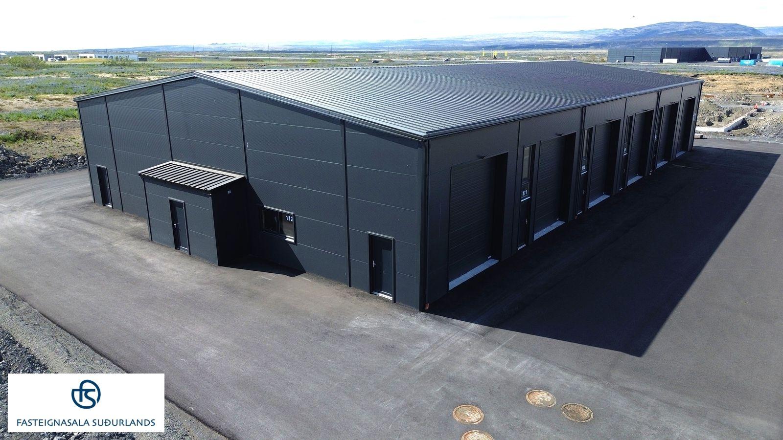 Nánari lýsing: Útveggir / þak / þakkantur / burðarvirki: Allir útveggir og þak hússins eru úr yleiningum, samlokueiningar frá Kingspan. Burðarvirki er límtré. Litur klæðninga að utanverðu er RAL7016 og að innan RAL 9010. Þakkantur er einfaldur, stálklæddur í sama lit og þakefni með utanáliggjandi álrennum og niðurfallsrörum í sama lit. Mjög stór aksturshurð eða 4,35 með rafmótoropnun. 1 gönguhurð er úr viðhaldsfríu PVC plasti með tvöföldu einangrunargleri. Möguleiki á salerni og vaski í hverju bili. Gólfniðurfall er fyrir innan allar innkeyrsluhurðir. Einingin er með ræstivask. Lóðin er malbikuð, gert ráð fyrir einu bílastæði fyrir framan hverja einingu. Slökkvitæki fylgir. Niðurföll af malbikuðum plönum frágengin og tengd fráveitukerfi. Hitakerfi: Gólfhitakerfi stjórnað með handvirkum ofnloka. Rafmagn: Aðaltafla með mælum fyrir hverja starfseiningu frágengin í inntaksrými. 3ja fasa tengli við hliðina. Tenglar á nokkrum stöðum. Full lýsing (LED) í hverri starfseiningu Auðvelt að breyta ljósum, slökkvurum, tenglum og slíku ef þurfa þykir. Útiljós við hurðir á hverri starfseiningu sem hægt er að stjórna frá viðkomandi einingu og tengist viðkomandi mæli (ekki sameign). Gert er ráð fyrir tengibúnaði vegna hleðslu rafbíla við hverja einingu. Lóð: er malbikuð.