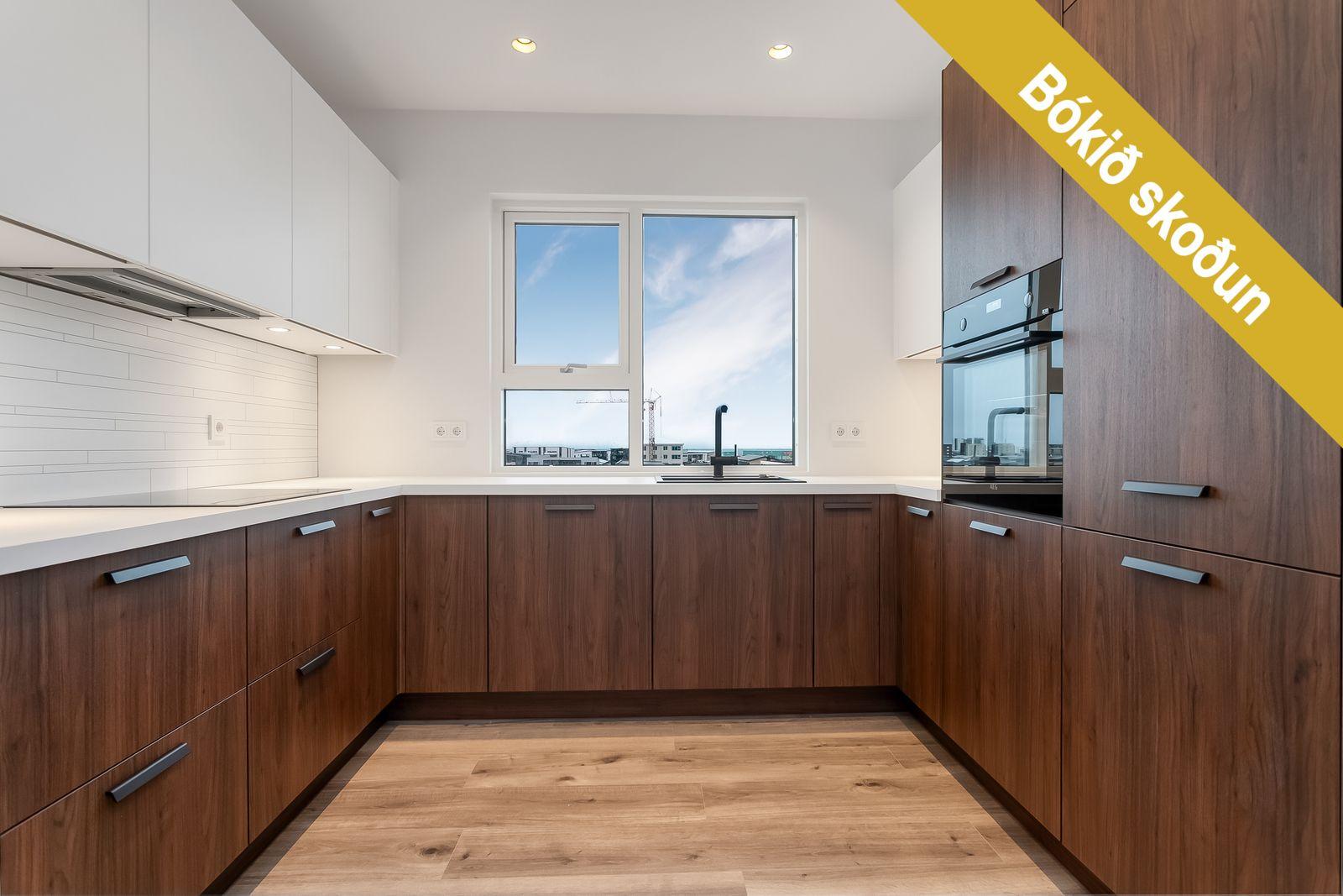 Betri Stofan Fasteignasala, Dagrún Davíðsdóttir og Jason Kristinn Ólafsson löggiltir fasteignasalar kynna nýja 3 herbergja 71,6 fm íbúð á 1 hæð með sérinngangi ásamt geymslu og bílastæði í bílakjallara. Hellulagður sérafnotareitur sem snýr til suðurs. Íbúðirnar afhendast fullbúnar við kaupsamning, með gólfefnum, innbyggðri uppþvottavél, ísskáp með frysti og lýsing er í loftum. Ljós eru innbyggð að hluta. Baðherbergi eru flísalögð með sturtugleri, vaski, upphengdu salerni og handklæðaofn.