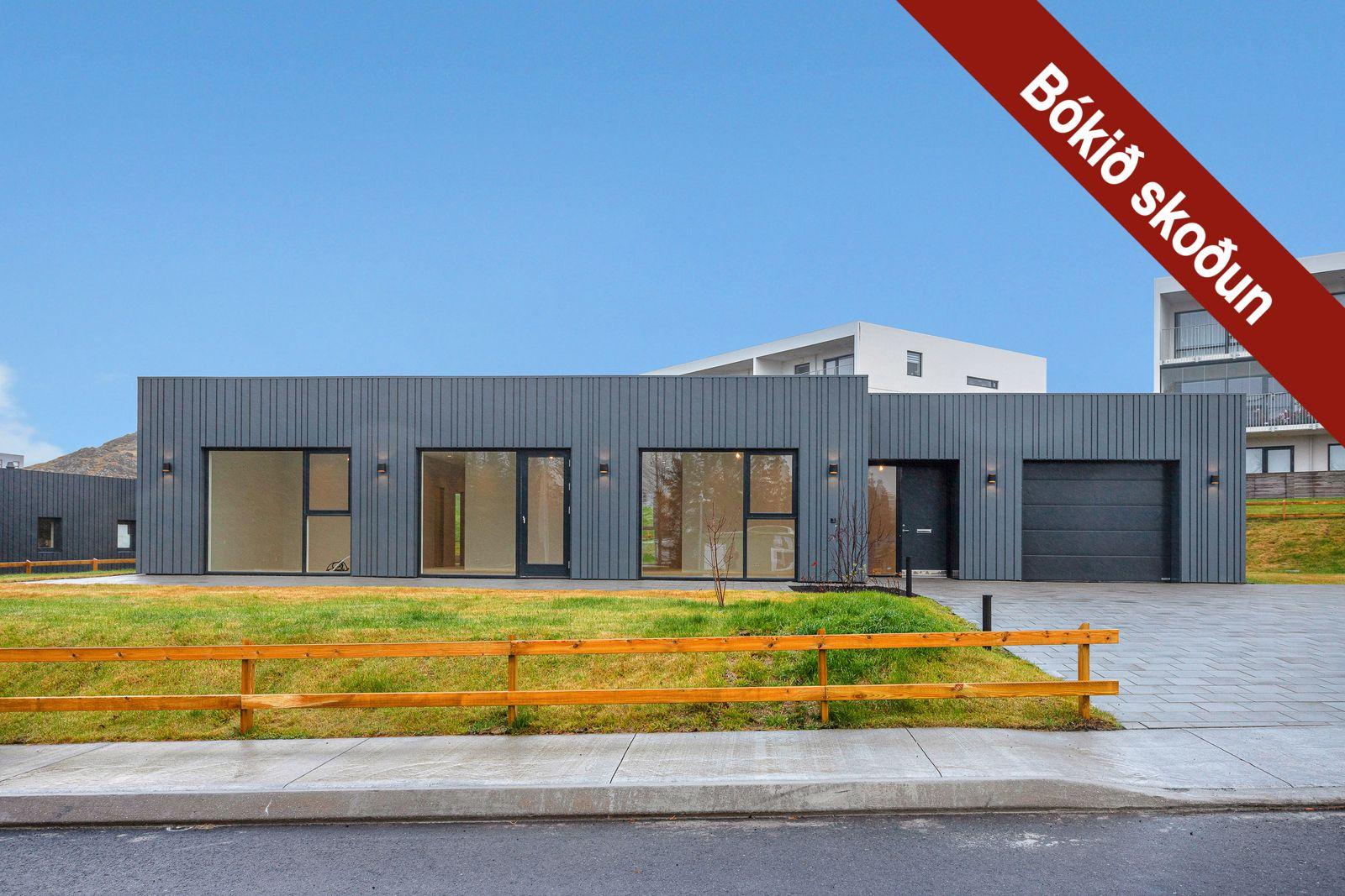 Eignin afhendist samkvæmt skilalýsingu seljanda svo til tilbúin til innréttinga en búið er að full mála veggi, setja hljóðdúk í loft með lýsingu og ganga frá rafmagni rafmagn fullfrágengið með free@home hússtjórnarkerfi og fullfrágengið loftskiptikerfi frá Ventum. Gólf eru rykbundin, en bílskúrsgólf er frágengið með epoxy gólefni. Bílaplan og gönguleið fyrir framan hús er hellulögð með snjóbræðslu að hluta. Hellulagt svæði er fyrir framan útgang úr stofu. Lóð er að öðru leiti þökulögð og afgirt með tveggja banda timburgirðingu. Eignin er laus til afhendingar við kaupsamning. Sjá nánari skilalýsingu hér fyrir neðan:Frágangur utanhússBurðvirki: Allt burðarvirki hússins, þ.e.a.s. sökklar, botnplata, berandi veggir og þak eru úr járnbentri steinsteypu. Einangrað er undir botnplötu og utan á sökkla með 100mm plasteinangrun.