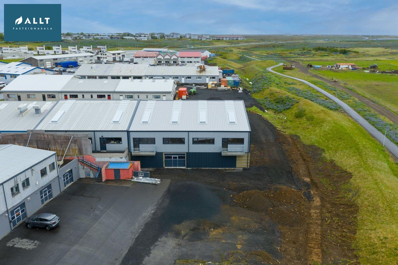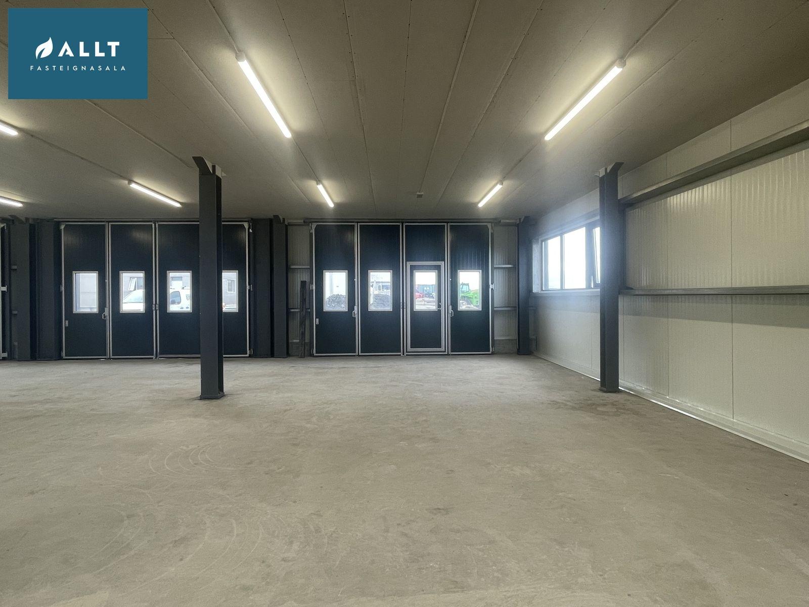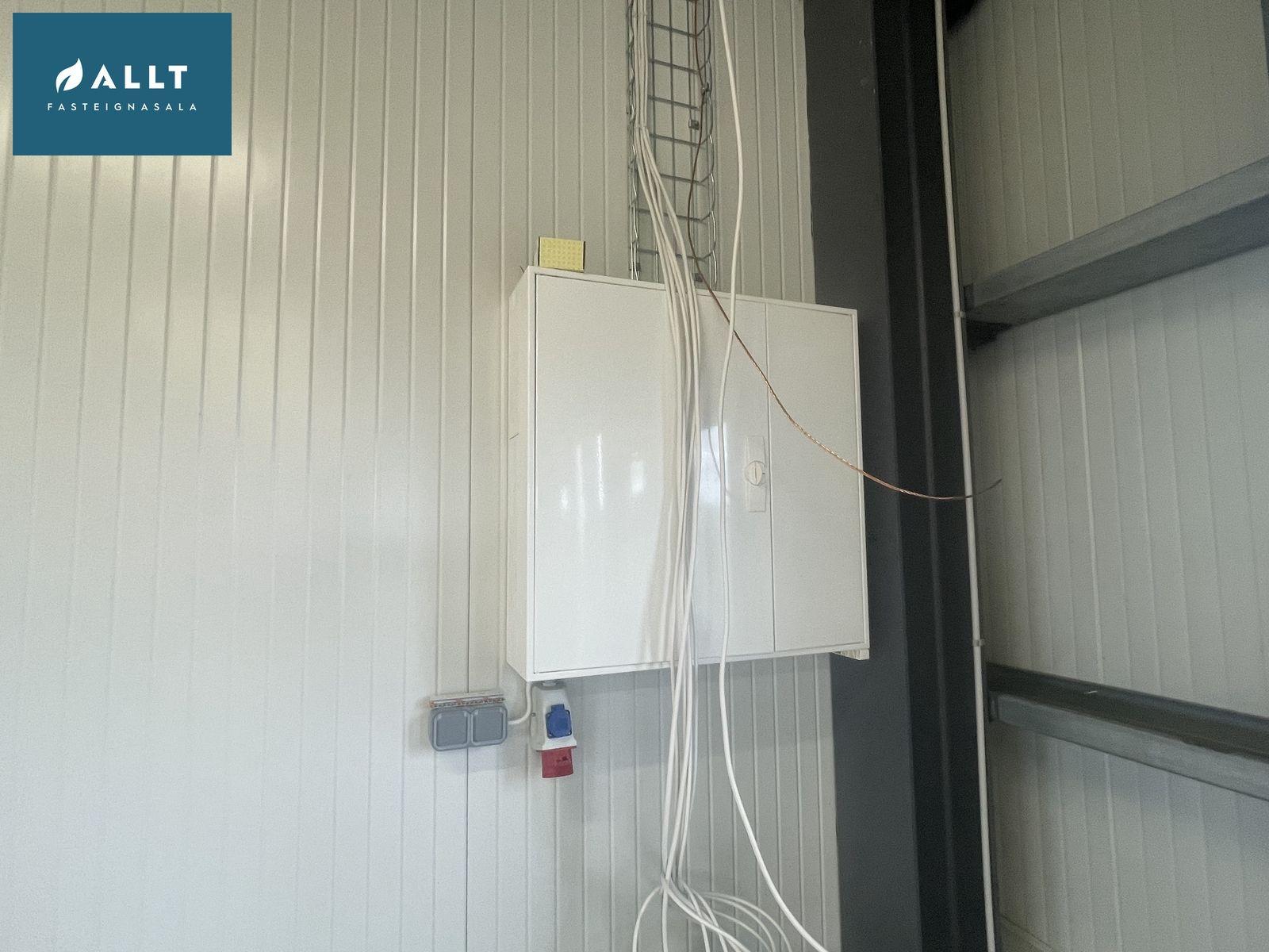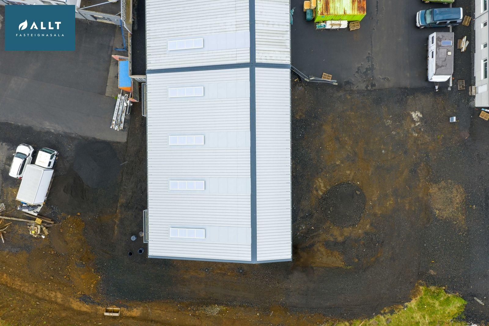 pall@allt.isEignin skilast við kaupsamning fullbúin að utan með malbikuðu bílaplani. Að innan er komin rafmagnstafla, hitablásari, samloku iðnaðarhurð, ljós eru í loftum og fyrir utan.