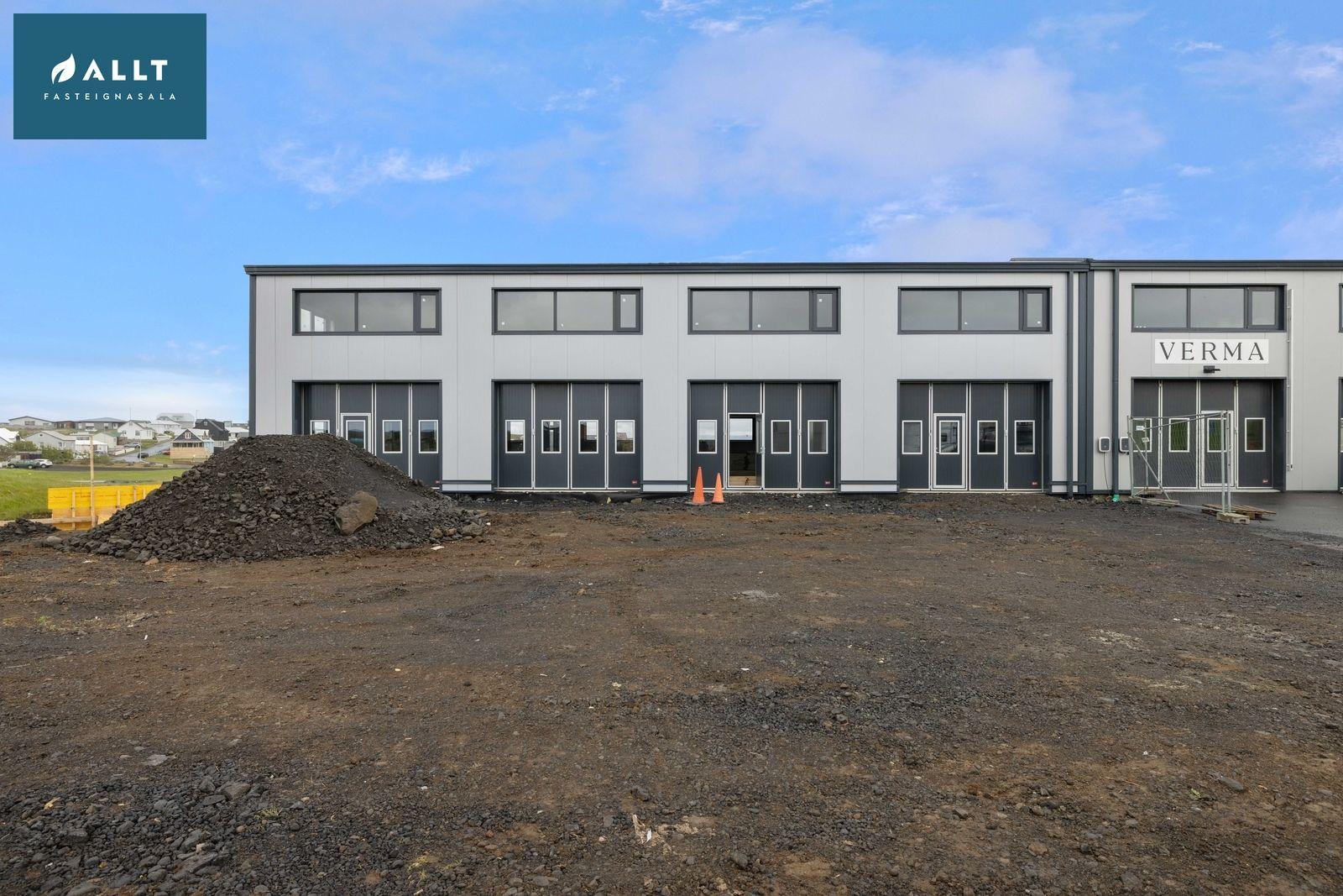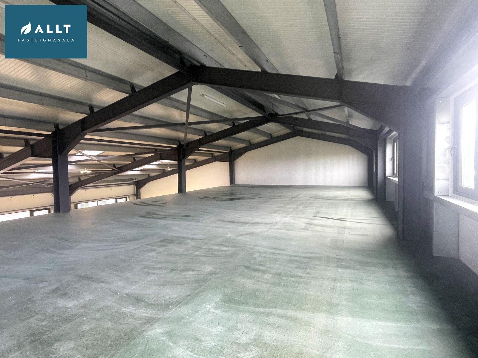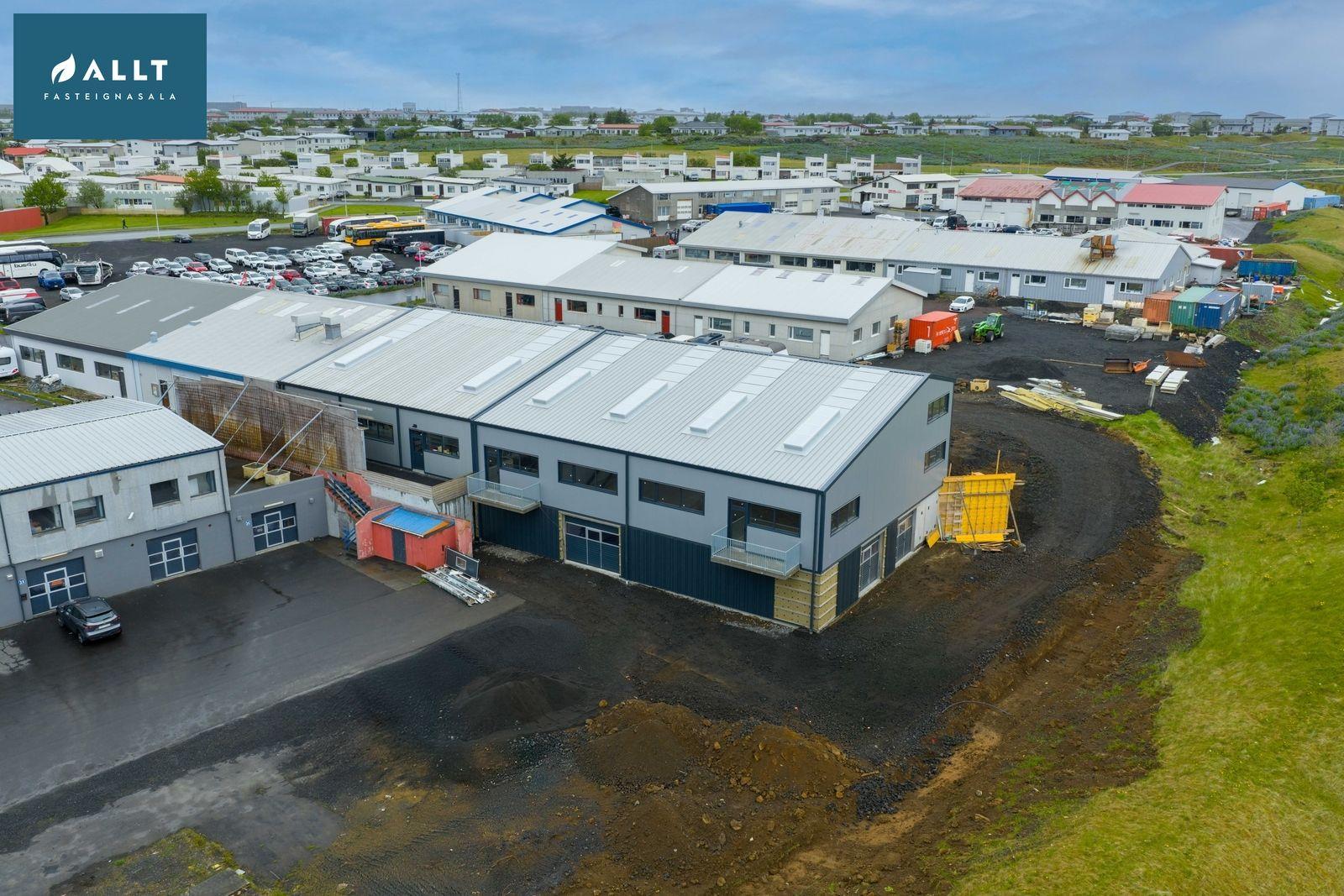 pall@allt.isEignin skilast við kaupsamning fullbúin að utan með malbikuðu bílaplani. Að innan er komin rafmagnstafla, hitablásari, samloku iðnaðarhurð, ljós eru í loftum og fyrir utan.