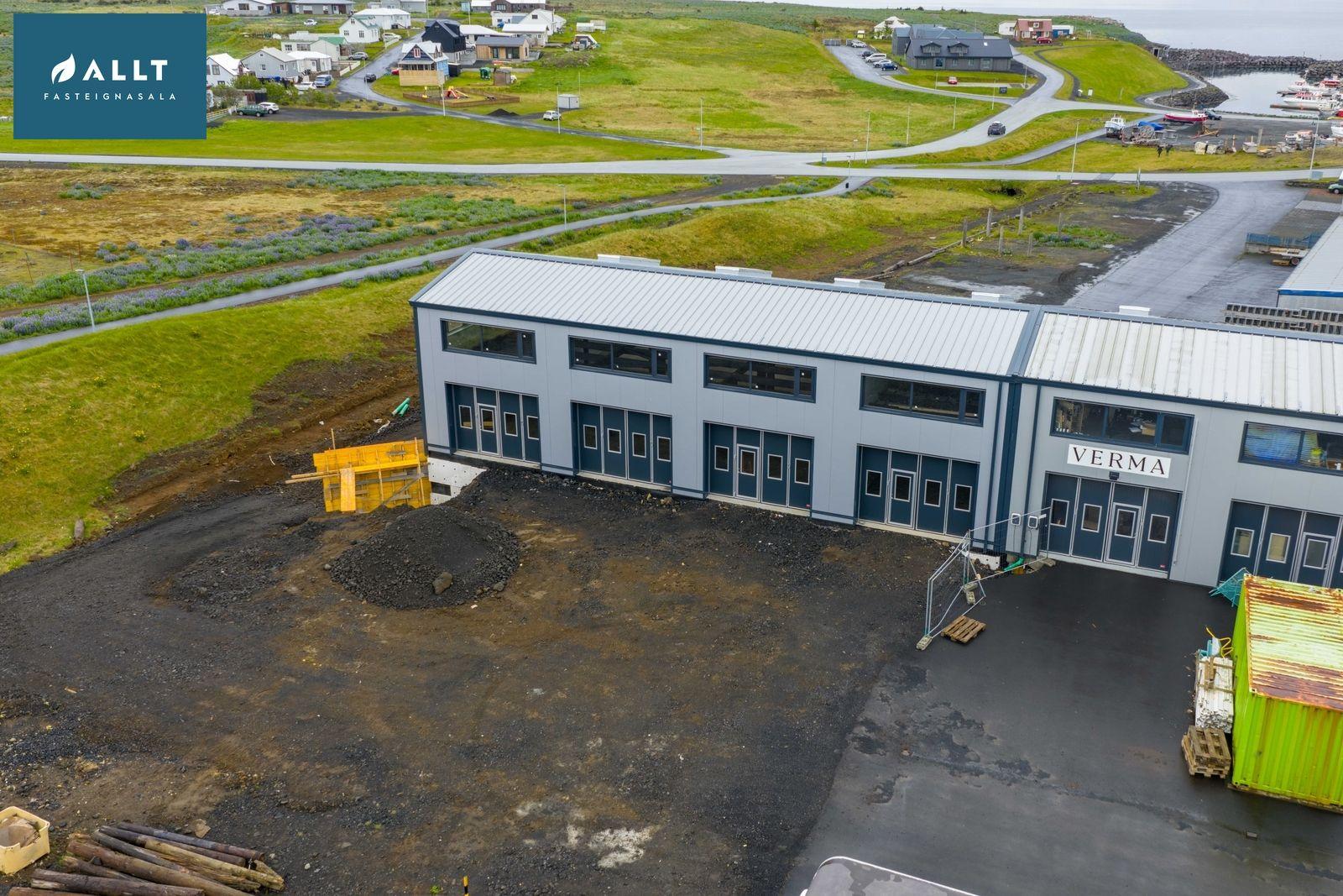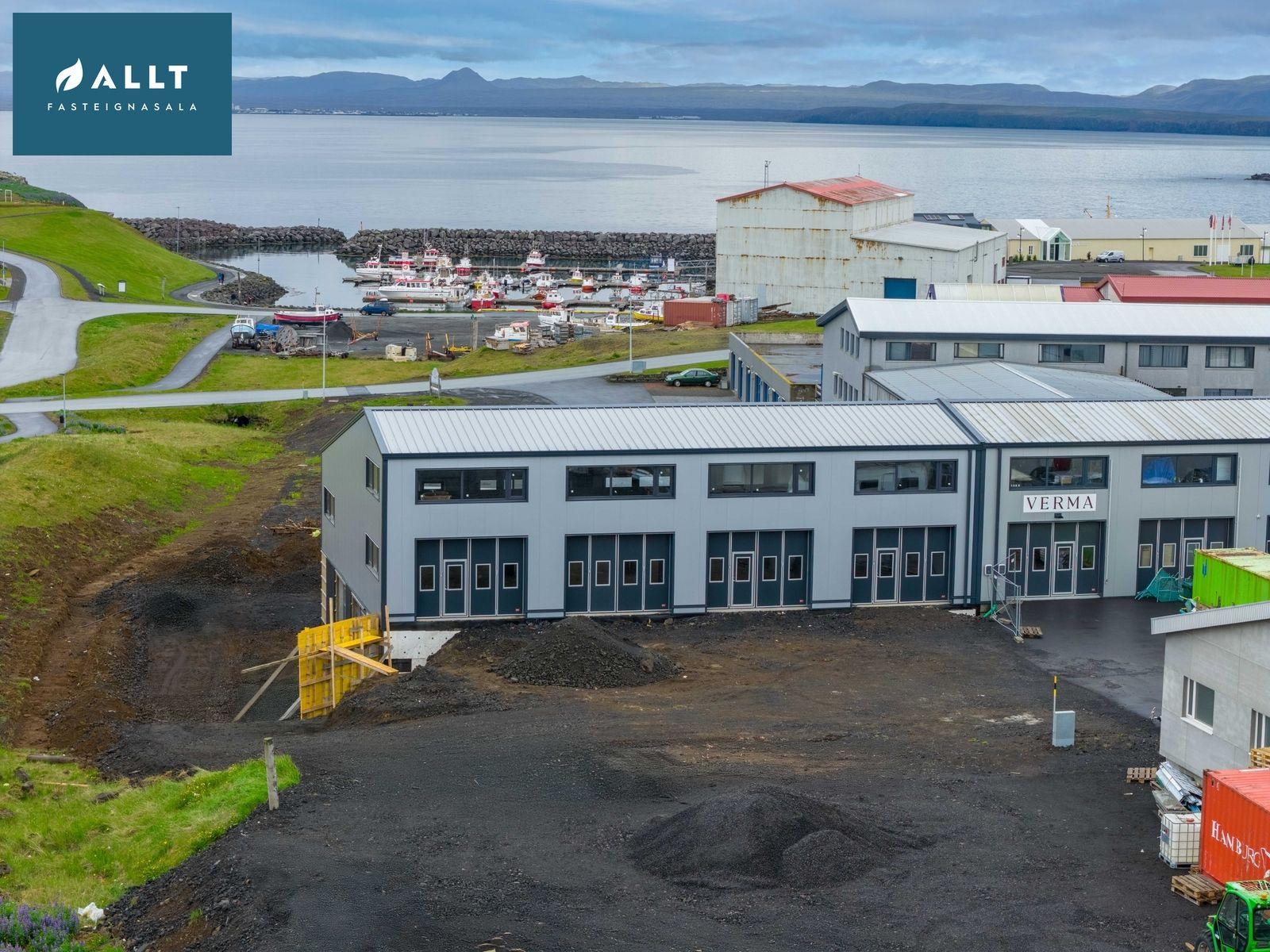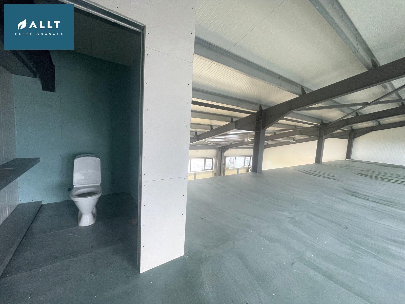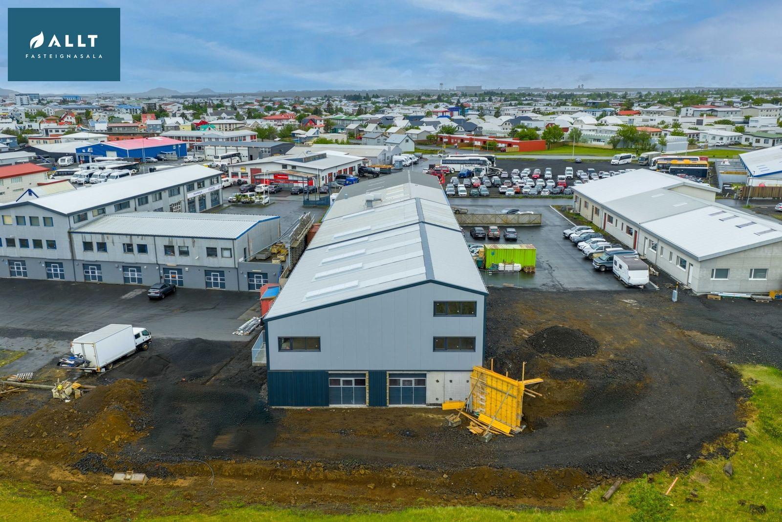 pall@allt.isEignin skilast við kaupsamning fullbúin að utan með malbikuðu bílaplani. Að innan er komin rafmagnstafla, hitablásari, samloku iðnaðarhurð, ljós eru í loftum og fyrir utan.