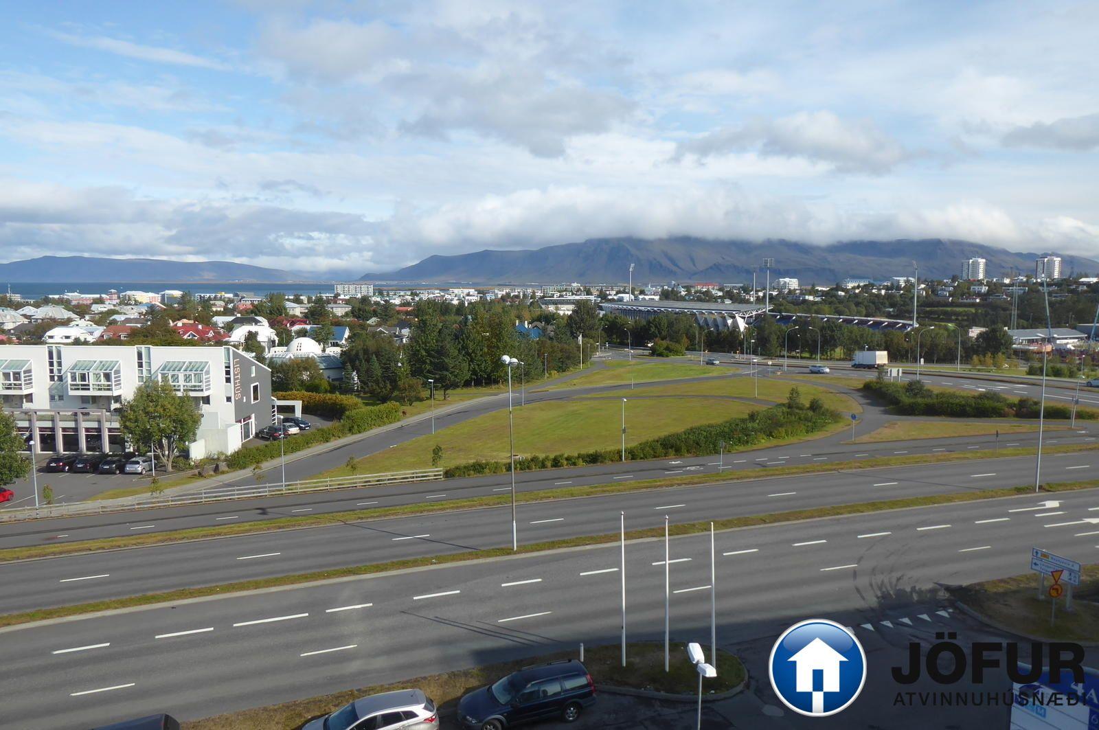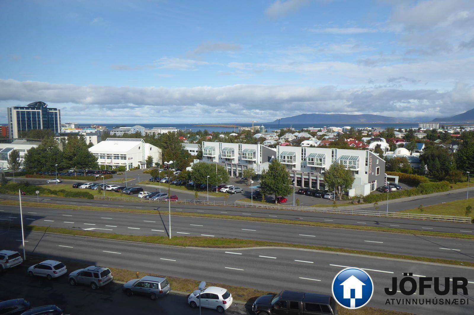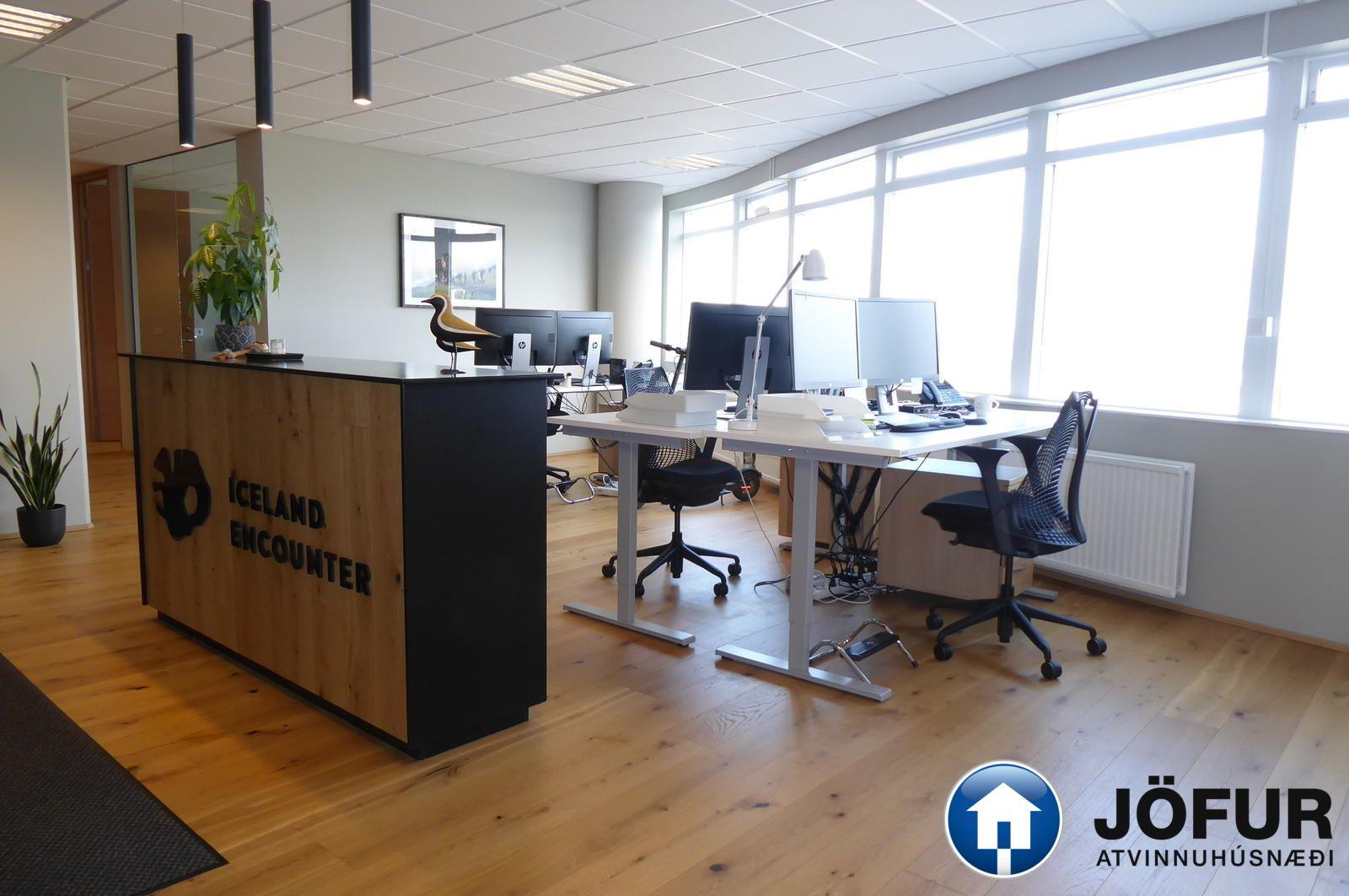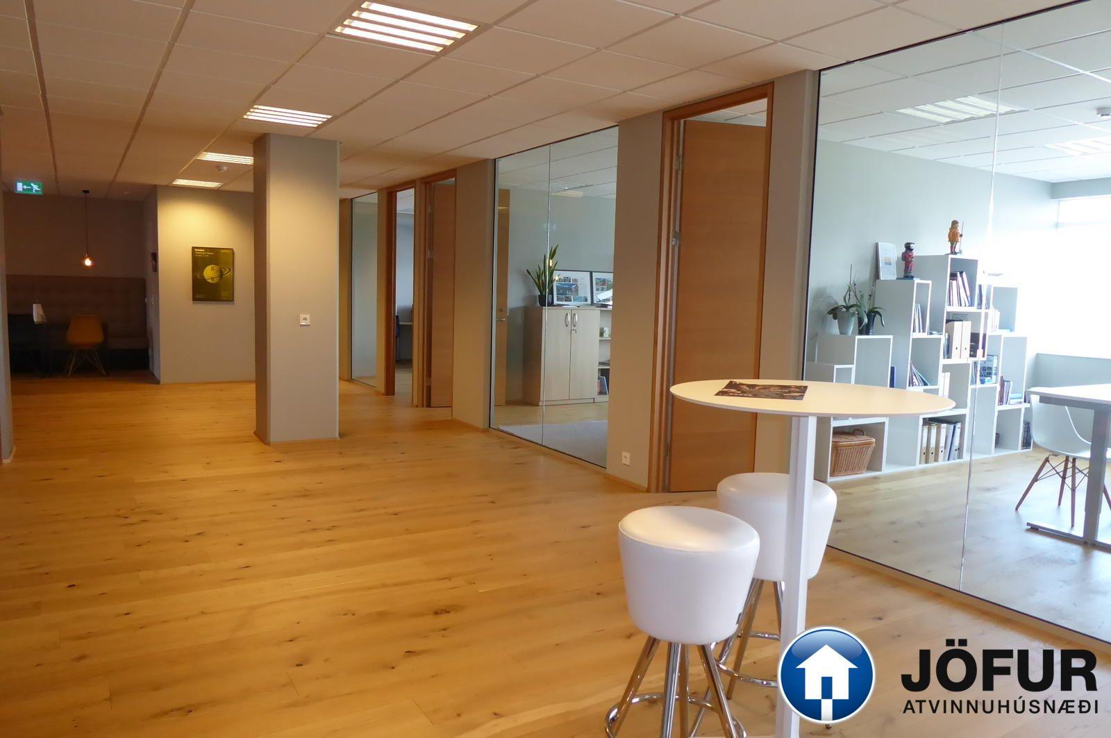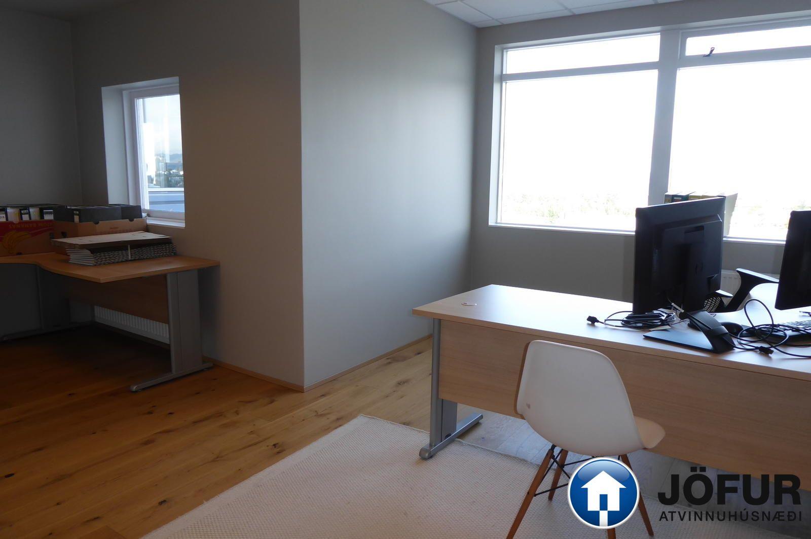 Húsnæðið skiptist upp í móttöku, opið rými, þrjár lokaðar skrifstofur, fundarherbergi, eldhús/ kaffistofu með innréttingu, tækniherbergi/ skjalageymslu og snyrtingar. Á gólfum er parket. Kerfisloft og lýsing í loftum. Ljósleiðaratenging er inn í rýmið. VSK leggst við leigufjárhæðina. Glæsilegt útsýni er í átt til Laugardals, Esju og út á sundin blá.