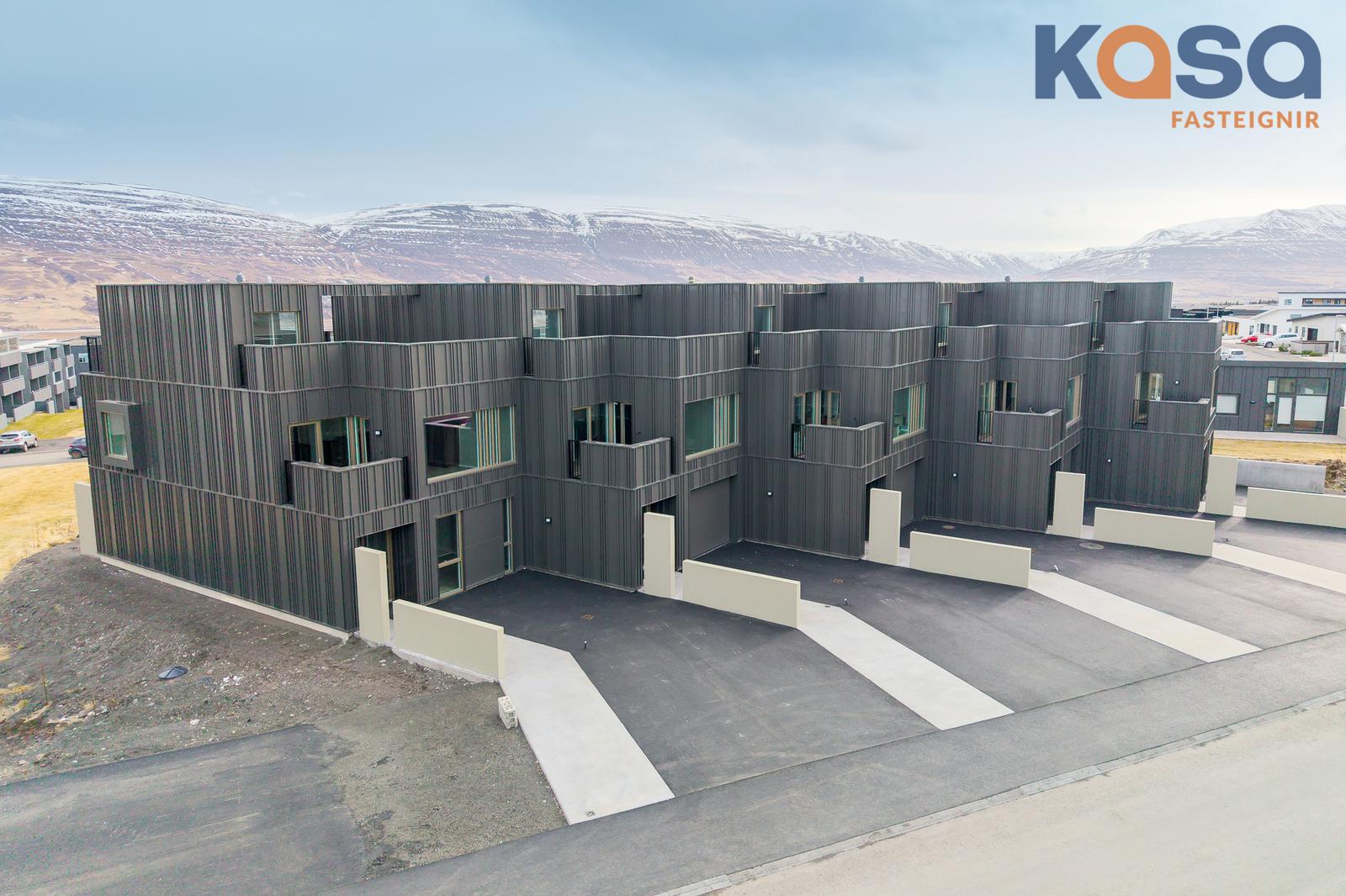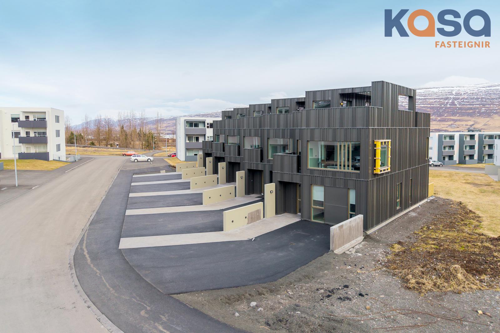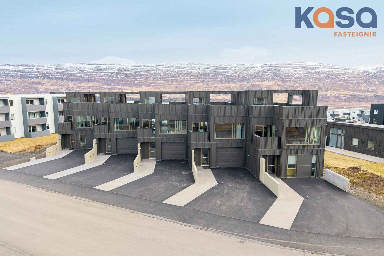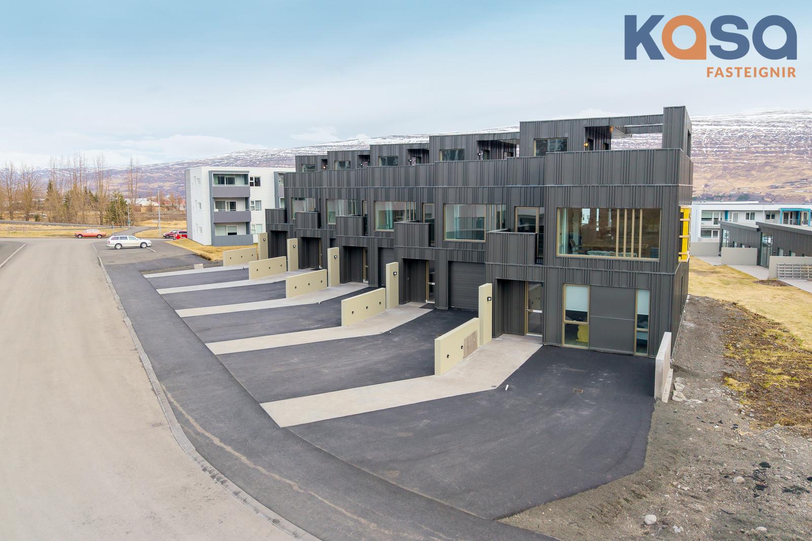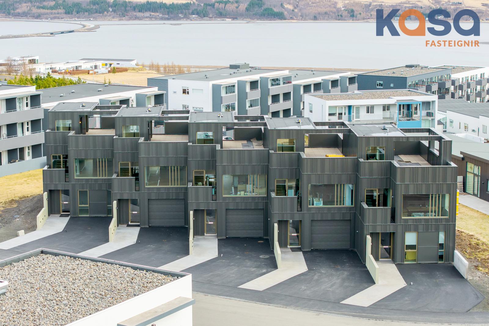 Eignin er skemmtilega hönnuð þar sem svefnrými, baðherbergi og bílskúr eru á jarðhæð, stofa, eldhús og baðherbergi á efrihæð og rúmgóð verönd á þaki eignar.