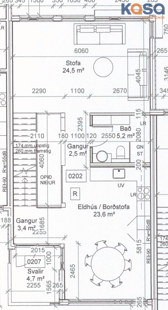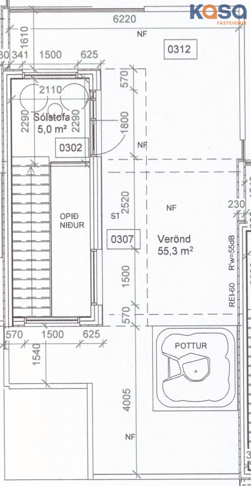 - Rúmlega 55 m² þaksvalir þar sem möguleiki er að koma fyrir heitum potti og útisturtu