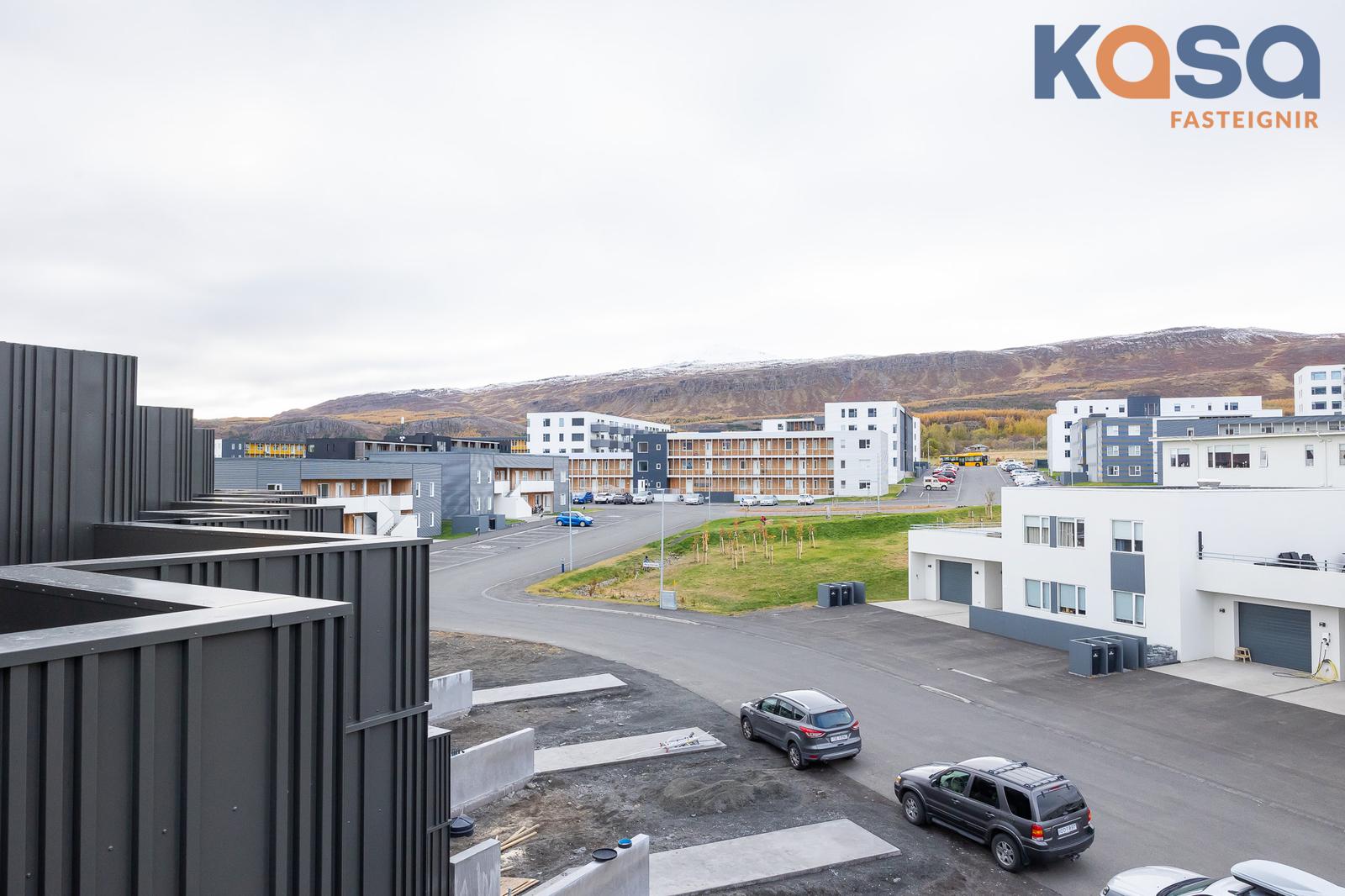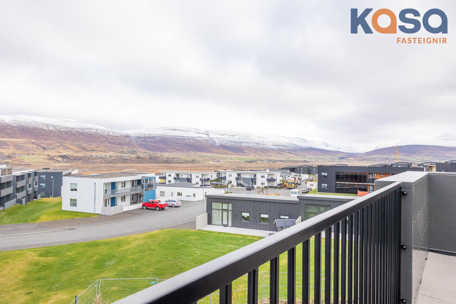 Stofa er með stórum gluggum til þriggja átta. Virkilega skemmtilegt útsýni er úr stofu.