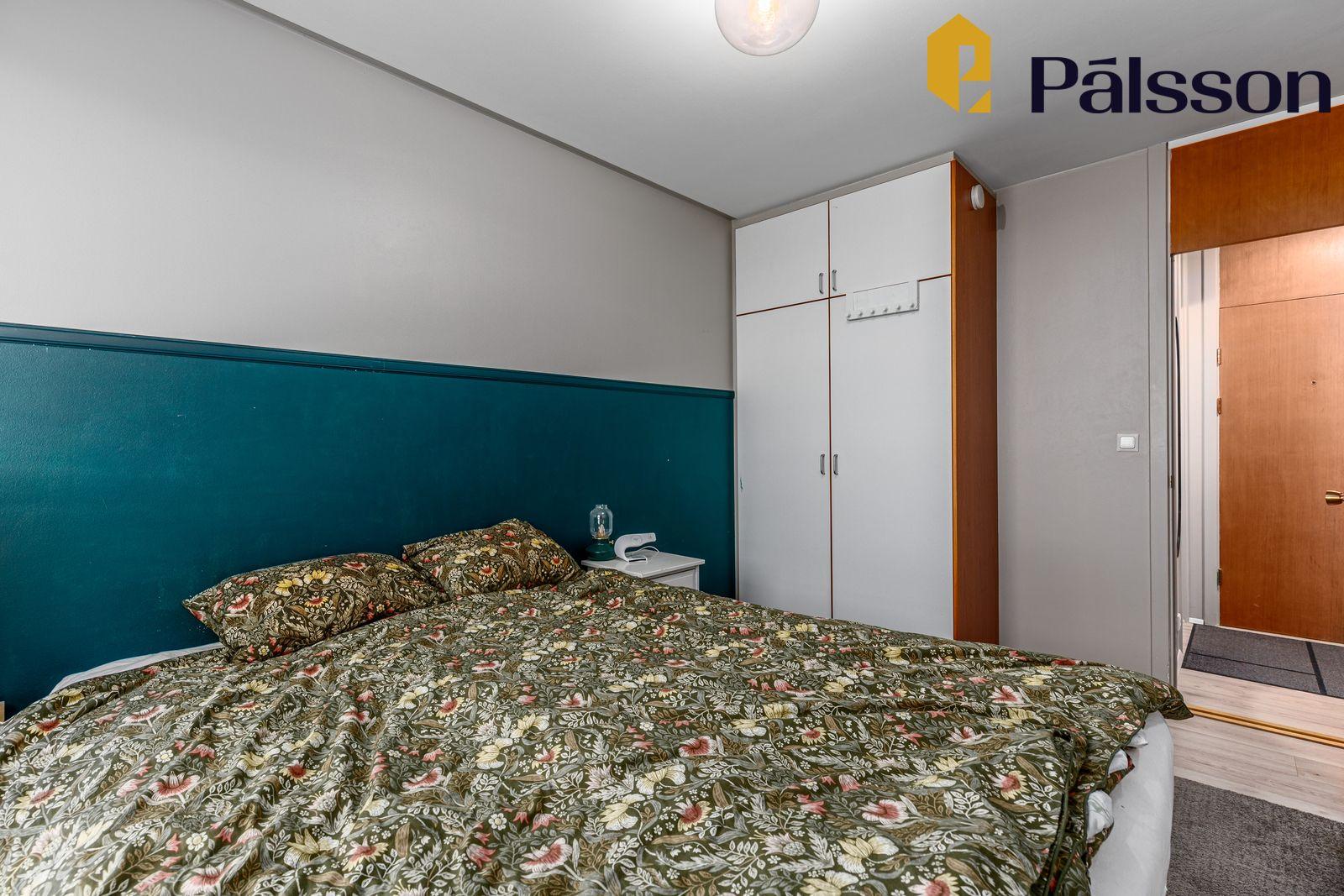 Hjónaherbergi: hjónaherbergi er rúmgott og með fataskáp.