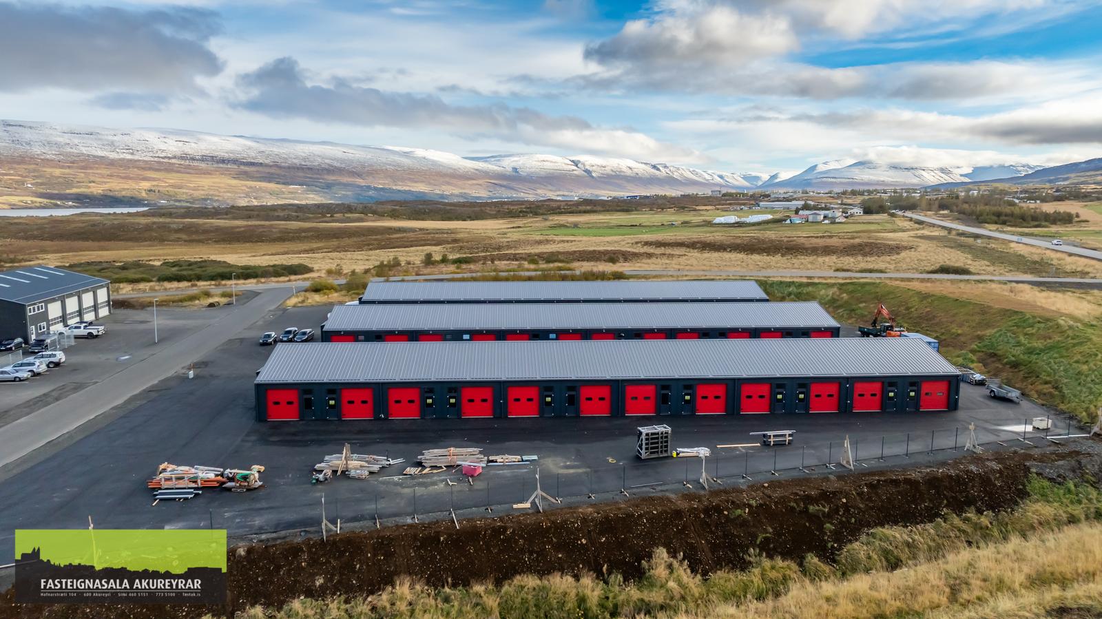 Nú er rétti tíminn til að tryggja sér geymslubil fyrir veturinn, afhending 1. nóvember 2024 Lækjarvellir 1c Geymslan er 45,2 m2 og er með vélslípuðu gólfi, upphitun er með vatnsofni, rafmagn er lagt „í töflu“ og eitt ljós og útilýsing. Inntak fyrir heitt og kalt vatn. Niðurfall við útihurð og innst er gert ráð fyrir snyrtingu, lagnir að og frá. Hæð húss upp í mæni er 5,83 metrar. Hæð innkeyrsluhurðar er 3 metrar og breidd er 3 metrar og verður hún rafdrifinn og einnig verður ein inngangshurð. Stærð: 45,2m2, innanmál er 5,53 metrar á breidd og 7,82 metrar á lengd. Geymsluhúsnæði á einni hæð sem stendur á steinsteyptum sökkli. Burðarvirki er úr stálrömmum. Útveggir eru úr yleiningum, kjarni er polyurithane PIR sem festar eru á burðarkerfi úr stálprófílum. Innveggir er úr samloku eignar með steinull á milli hólf. Sameign allra Í matshlutanum er í sameign allra tæknirými merkt 0125. Einnig er í sameign allra allt ytra byrði matshlutans ásamt öllum lögnum, svo sem fyrir heitt/kalt vatn, skólp, rafmagn, síma, loftnet og fl. sem þjóna sameiginlegum þörfum og þörfum heildarinnar, án tillits hvar þær eru í húsinu. Kostnaður vegna sameignar allra skiptist eftir hlutfallstölu í sameign allra mhl 01. Sameign allra er lituð með gulum lit á teikningum. Hita og rafmagnskostnaður. Hita og rafmagnskostnaður Í matshlutanum eru tuttugu og fimm rafmagnsmælar sem mæla rafmagnsnotkun fyrir alla matshluta. Það er einn rafmagnsmælir fyrir hverja séreign og einn mælir sem mælir rafmagnsnotkun fyrir sameign allra og alla útilýsingu við matshlutann og lýsingu á lóð. Hver séreign greiðir samkvæmt sínum mæli en kostnaður vega sameignarmælis skiptist að jöfnu á milli allra séreigna í matshlutanum. Rafmagnsinntak og rafmagnsmælar eru staðsett í tæknirými 0125. Í matshlutanum er einn heitavatns rennslismælir sem mælir heitavatnsnotkun fyrir alla matshluta. Hitakostnaði er skipt eftir brúttó rúmmáli upphitaðra rýma og er það tekið fram í eignalýsingum séreigna sem hlutfallstala í hitakostnaði. Öll séreignarrými í matshlutanum eru upphituð. Tæknirými 0125 reiknast ekki hlutfall í hitakostnaði þar sem rýmið tekur hita frá hitagrind sem staðsett er í rýminu. Heitavatnsinntak og rennslismælir eru staðsett í tæknirými 0125.