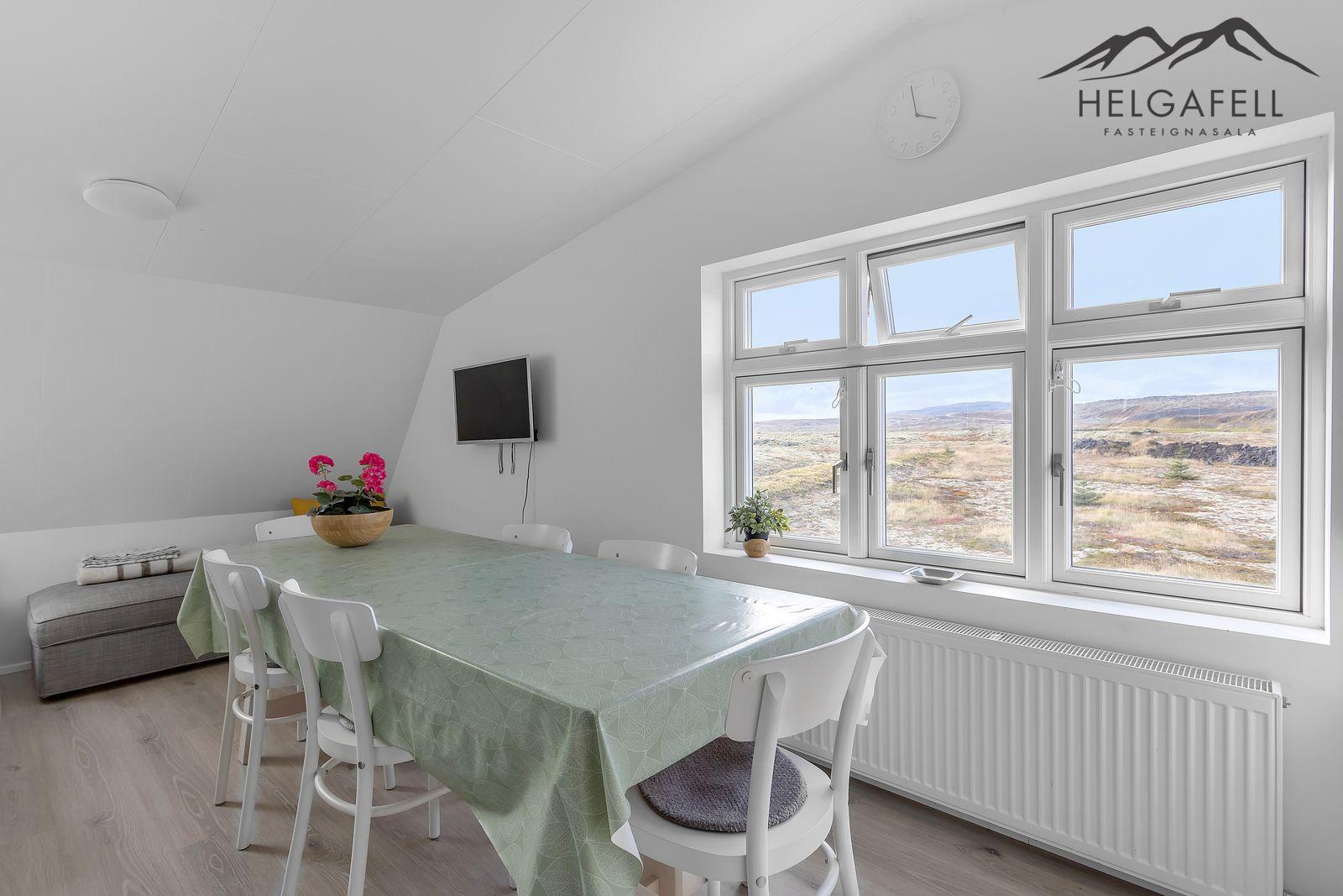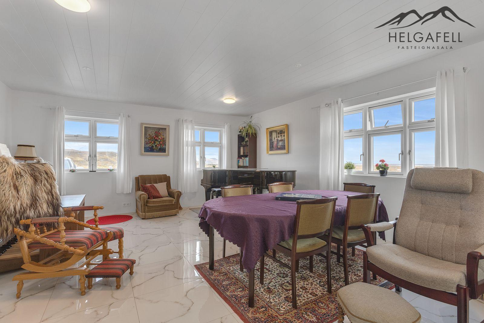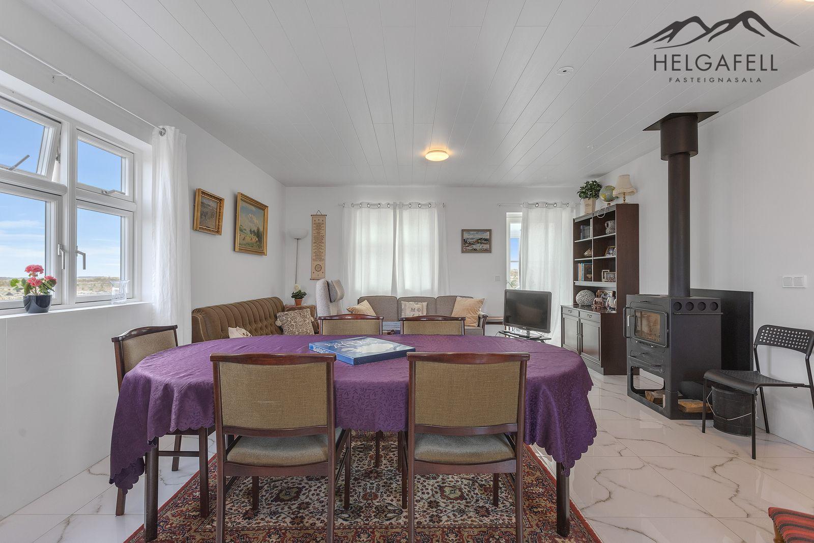 Einbýlishús með tveimur aukaíbúðum, innbyggðum bílskúr og tækjasal/vinnustof á eignarlóð í Ölfusi mitt á milli Þorlákshafnar og Hveragerðis. Ýmsir möguleikar í nýtingu, eignin hefur verið að hluta til í útleigu til ferðamanna, útsýni yfir Ölfusið að Hveragerði og að Ingólfsfjalli, að Ölfusárósum og að Þrengslum. Aðkoma er af Þorlákshafnarvegi nr. 38 og þaðan um Stóragerðisveg nr. 3983.