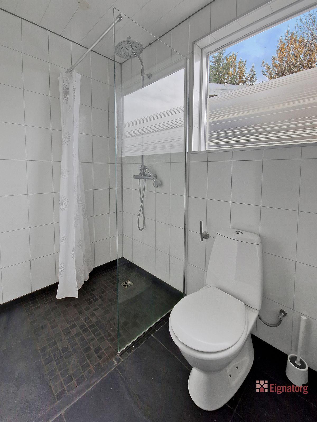 Nánari lýsing:Íbúðarhúsið: Gangur með flísum á gólfi og forstofuskáp. Baðherbergi með flísum á gólfi, flísum á veggjum, innréttingu, sturtu og glugga. Stofa með parketi á gólfi. Eldhús með parketi á gólfi, fallegri innréttingu, borðkrók, glugga og hurð út á góða suður timburverönd. Inn af eldhúsinu er búr. Þvottahús með flísum á gólfi, glugga og innréttingu. Herbergi með dúk á gólfi. Rúmgott herbergi / stofa með parketi á gólfi og gluggum til suðurs. Herbergi með parketi á gólfi. Herbergi með parketi á gólfi. Baðherbergi með flísum á gólfi, flísum og flísaplötum á veggjum, innréttingu, sturtu og glugga. Bílskúrinn: Forstofa með timburgólfi. Stofa með parketi á gólfi. Opið eldhús með parketi á gólfi, fallegri innréttingu með uppþvottavél sem fylgir og glugga. Baðherbergi með flísum á gólfi, hita í gólfi, flísaplötum á veggjum, innréttingu, og sturtu. Herbergi með parketi á gólfi. Herbergi með parketi á gólfi.