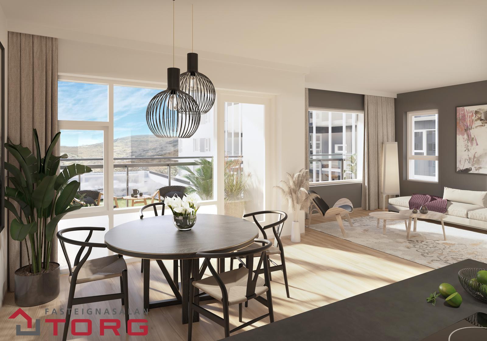 Fasteignasalan TORG kynnir: Flott 3ja herbergja íbúð á 4rðu hæð. Íbúð merkt:0403 ásamt bílastæði merkt05-E21, sem skilast fullbúin með gólfefnum. Íbúðin er alls 98,6 fm að stærð á 4. hæð í góðu lyftuhúsi , sjá hér slóð inná heimasíðu verkefnisins Íbúðin sjálf er skráð 88,4fm og skiptist í anddyri, alrými með eldhúsi og stofu með útgengi út á svalir, 2 svefnherbergi, baðherbergi með þvottaaðstöðu og sér geymslu í sameign, skráð 10,2 fm. Allar nánari upplýsingar, teikningar, og skilalýsingu er hægt að nálgast hjá Skúla lgfs. Fasteignasala í síma 869-7014 eða skuli@fstorg.is