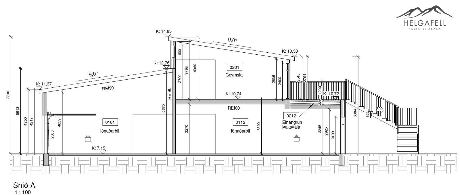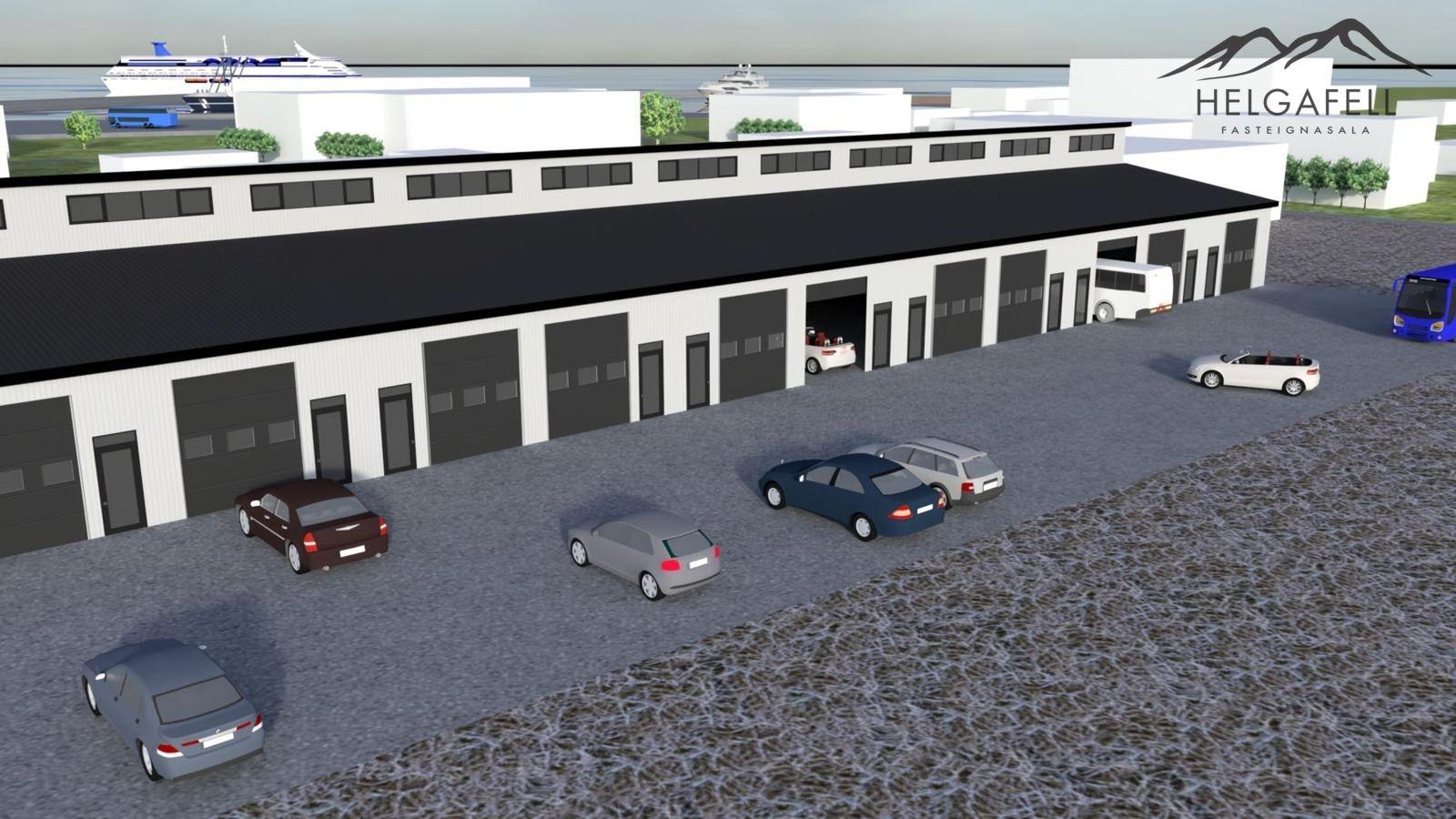 - Með 3,5 m aksturshurð og mikilli lofthæð sem rúmar milliloft og geymslu fyrir t.d. stærri ökutæki, stærðir 45-53,1fm.