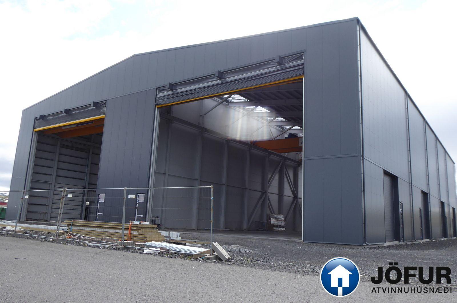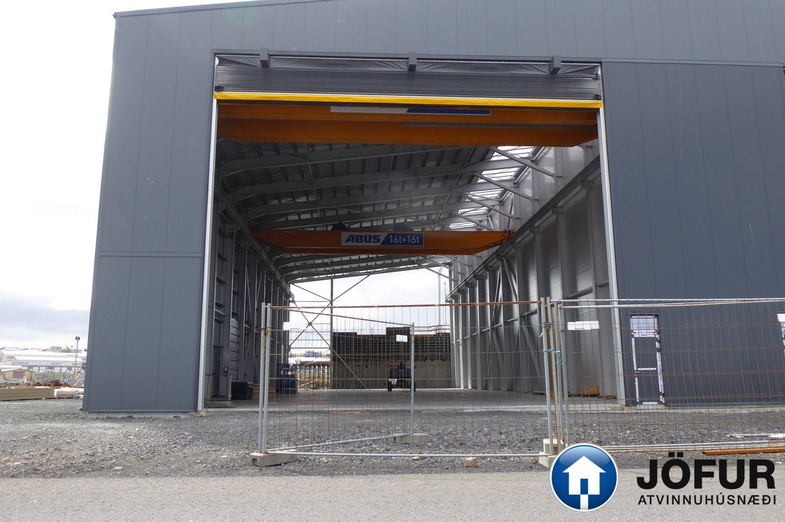 Nánari lýsing: Húsnæðið er að mestu einn stór vinnusalur með 12 - 16 m. lofthæð. Starfsmannaaðstaða, skrifstofur, eldhús/ kaffistofa og Wc verður í enda húsnæðisins sem snýr að sjónum. Nægt rafmagn er til staðar. Hæð á innkeyrsluhurðum er allt að 12 m. Niðurföll eru í gólfum. Upphitun verður með hitablásurum. Tveir ABUS 16t + 16t. brúkranar eru til staðar í húsnæðinu. VSK leggst við leigufjárhæðina.