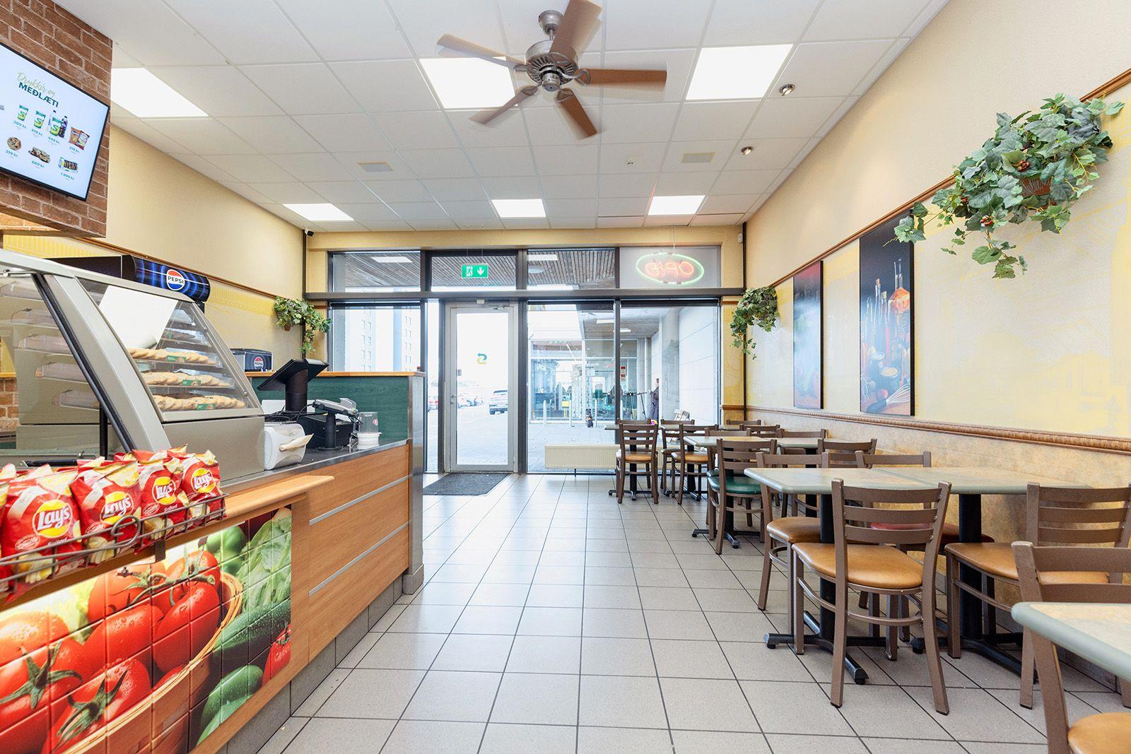Mjög góð aðkoma er að húsnæðinu og gengið er beint inn af stóru bílastæði. Rýmið er við hlið Krónunnar og er innréttað fyrir veitingastað en auðveldlega má nýta það fyrir ýmsa þjónustu. Afhending samkomulag