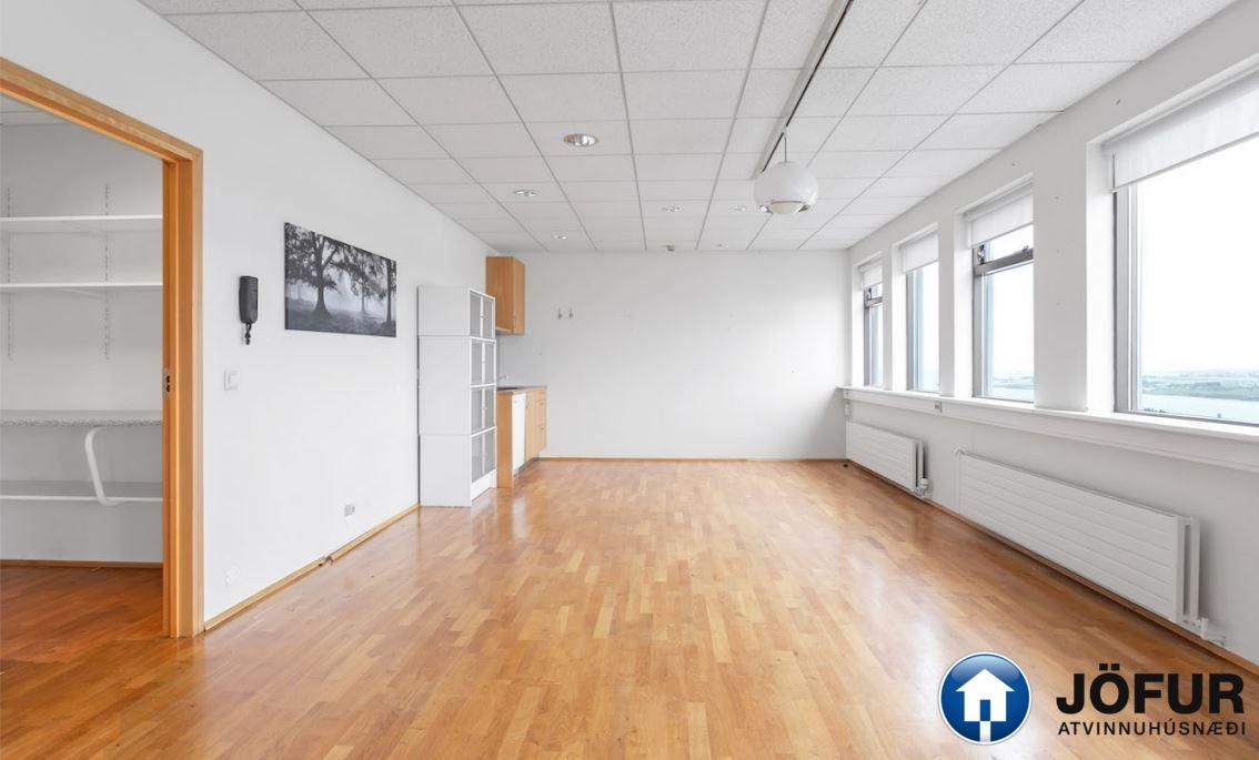 Til leigu: tæplega 107 m² skrifstofuhúsnæði að meðtalinni sameign á þriðju hæð við Hamraborg 9 með útsýni til norðurs. Laust strax.