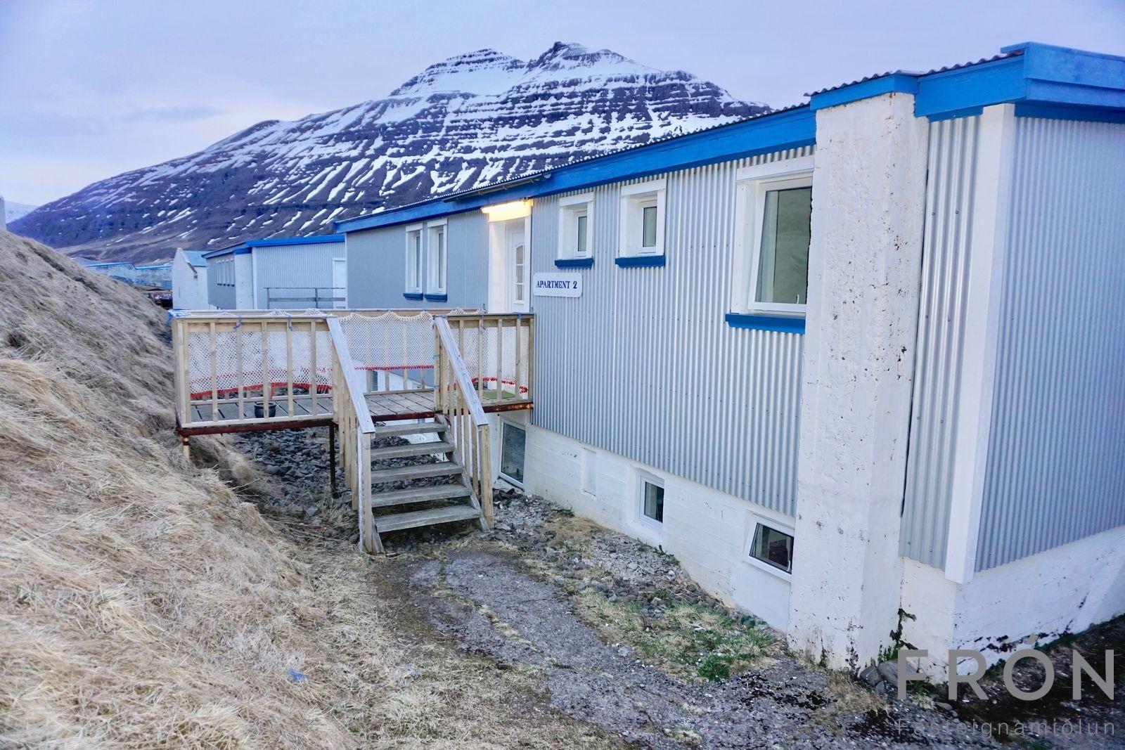 Góð bílastæði og opið rými við húsin sem gefur fallegt útsýni út og inn fjörðinn.