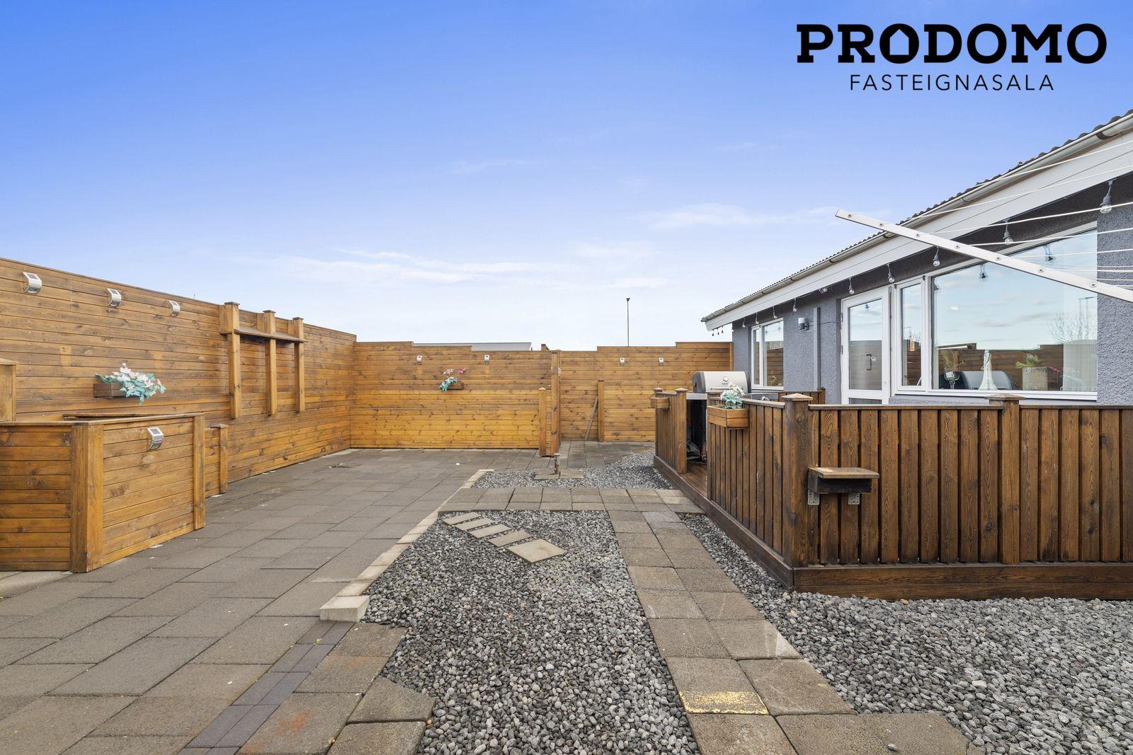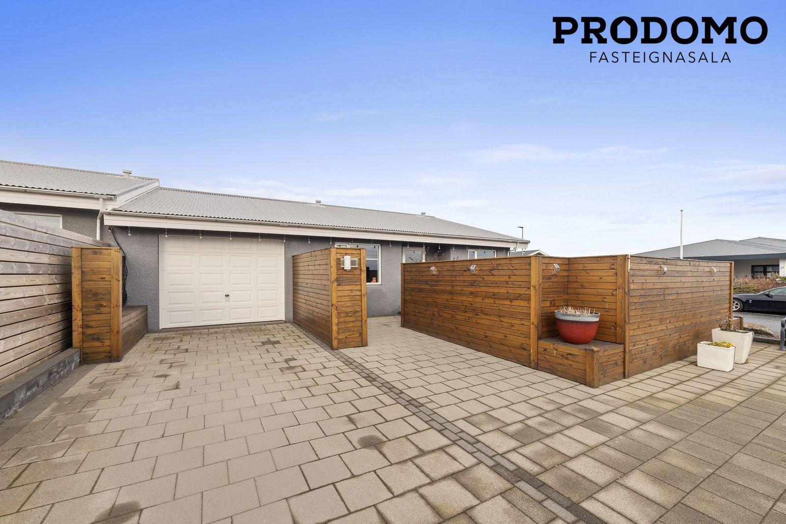 Samgöngur til og frá svæðinu eru auðveldar og örstutt er á Reykjanesbraut.Einstaklega vel skipulögð eign sem skiptist í forstofu, eldhús, stofu/borðstofu, baðherbergi, þrjú svefnherbergi og bílskúr. Alrými hússins er opið og bjart.