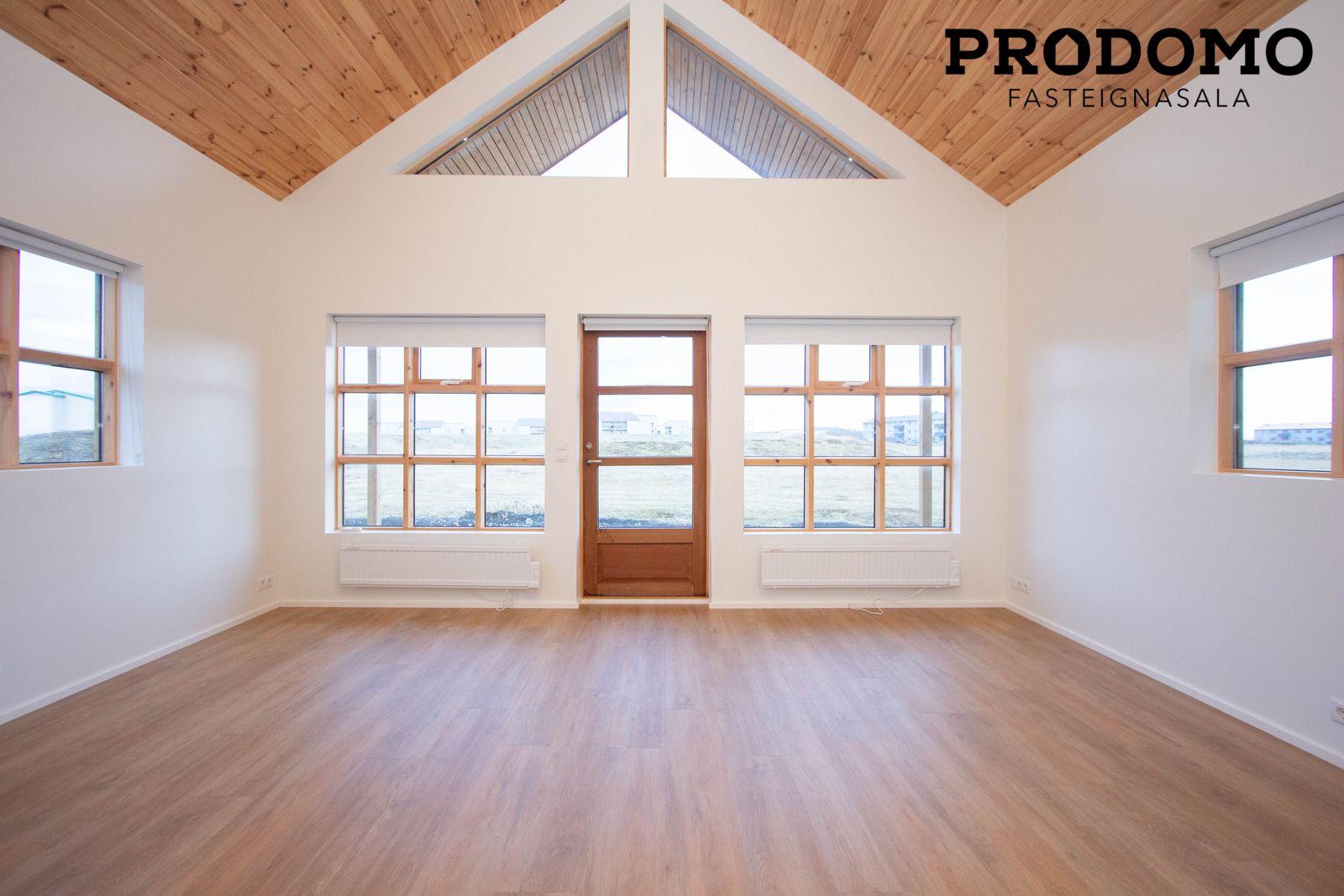 Fóðringar eru í dyragötum. Rúllugardínur í öllum gluggum. Innihurðar fylgja ekki.