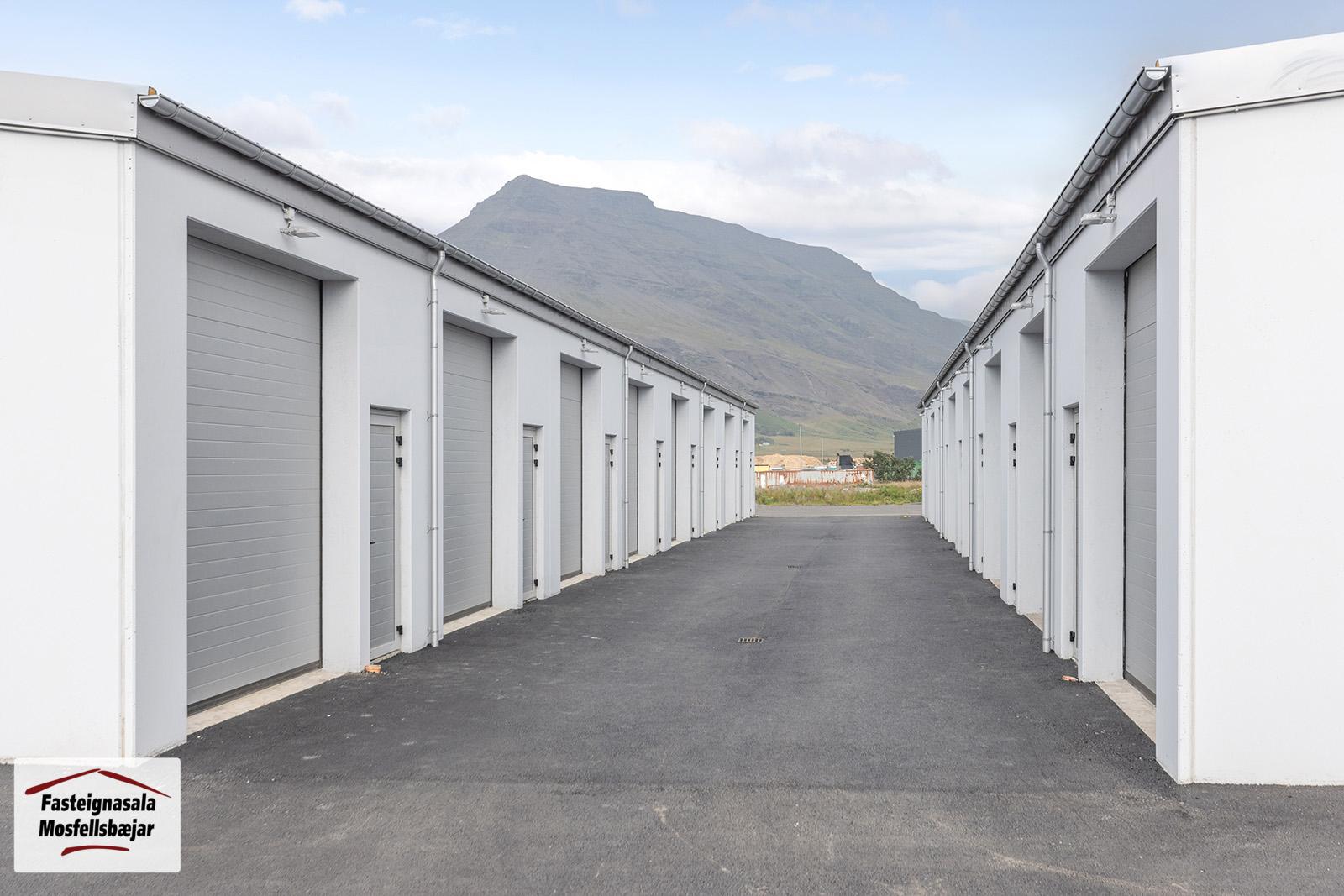 Nánari upplýsingar: Skv. teikningum er lofthæð frá 3,88 m til 4,79 m. Innanmál rýmis er um 7,58 m á dýpt og frá 4,58 m til 4,80 m á breidd. Bílskúrshurð er um 3,3 m á hæð og 2,8 m á breidd. Inngangshurð er við hlið bílskúrshurðar. Allir veggir eru úr forsteyptum steypueiningum og málaðir að innan. Þakvirki er úr límtré og klætt með yleiningum. Hurð er yleiningahurð. Kaupendur greiða skipulagsgjald þegar það verður innheimt. Skipulagsgjald er 0,3% af verðandi brunabótamati.