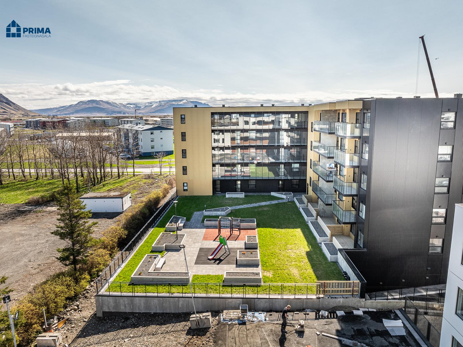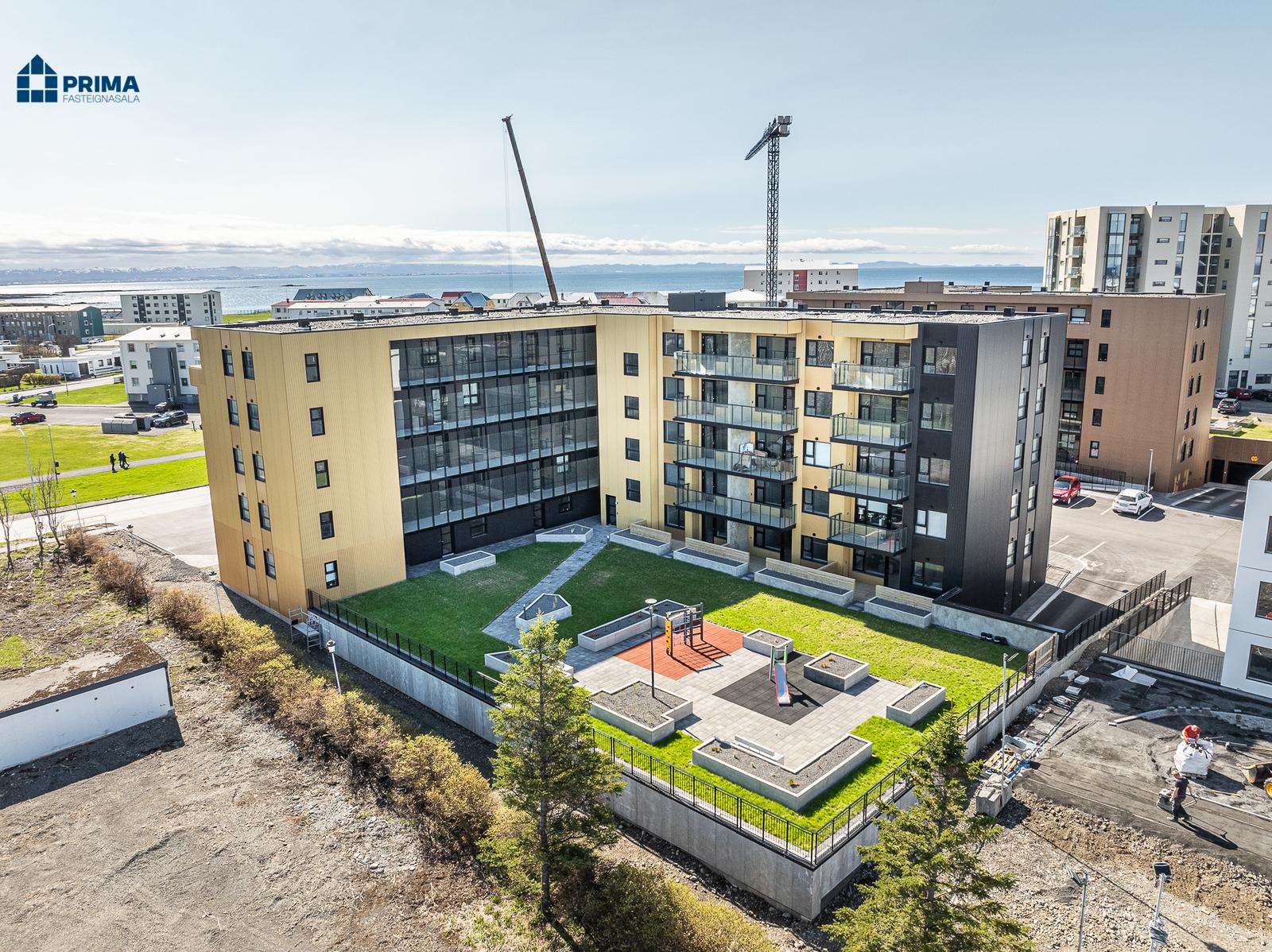 Þjóðbraut 5 - 300 Akranesi: Fjölbýlishúsið að Þjóðbraut 5 er staðsett í glæsilegu íbúðarhverfi í uppbyggingu á Akranesi. Byggingin er 5 hæðir með 38 íbúðum af fjölbreyttum stærðum og gerðum. Eitt stiga- og lyftuhús er í byggingunni. Svalagangar tengjast saman í vinkil á 2.-5. hæð og er aðgengi að stigahúsi frá tveim áttum. Þá hafa íbúðir á jarðhæðum sem snúa til suðurs sérinngang má segja. Á 1. – 5. hæð eru íbúðir af fjölbreyttum stærðum og gerðum, tveggja, þriggja og fjögurra herbergja. Í kjallara hússins er sameiginleg bílageymsla með bílastæðum fyrir 26 bifreiðir. Að auki eru í kjallara sérgeymslur fyrir hluta íbúða ásamt vagna- og hjólageymslu og sameiginlegum tæknirýmum. Aðalinngangur er staðsettur á 1. hæð. Eingöngu er notast við fyrsta flokks efni bæði innan- sem og utandyra. Léttir innveggir íbúða eru með sérvöldu gipsefni fyrir hvert rými og veggir sérgeymslna eru hlaðnir.
