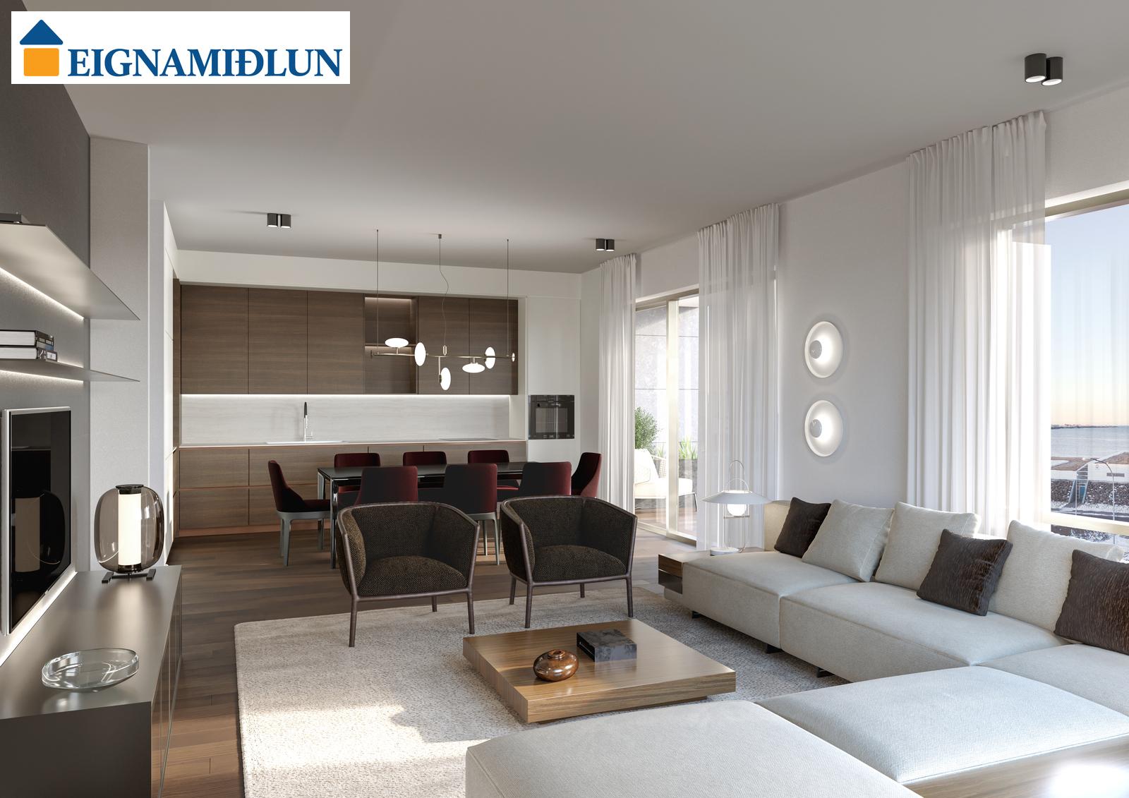Mikil vinna hefur verið lögð í flæði íbúða og val á innréttingum sem spegla listrænan metnað í verkefninu sem heild.