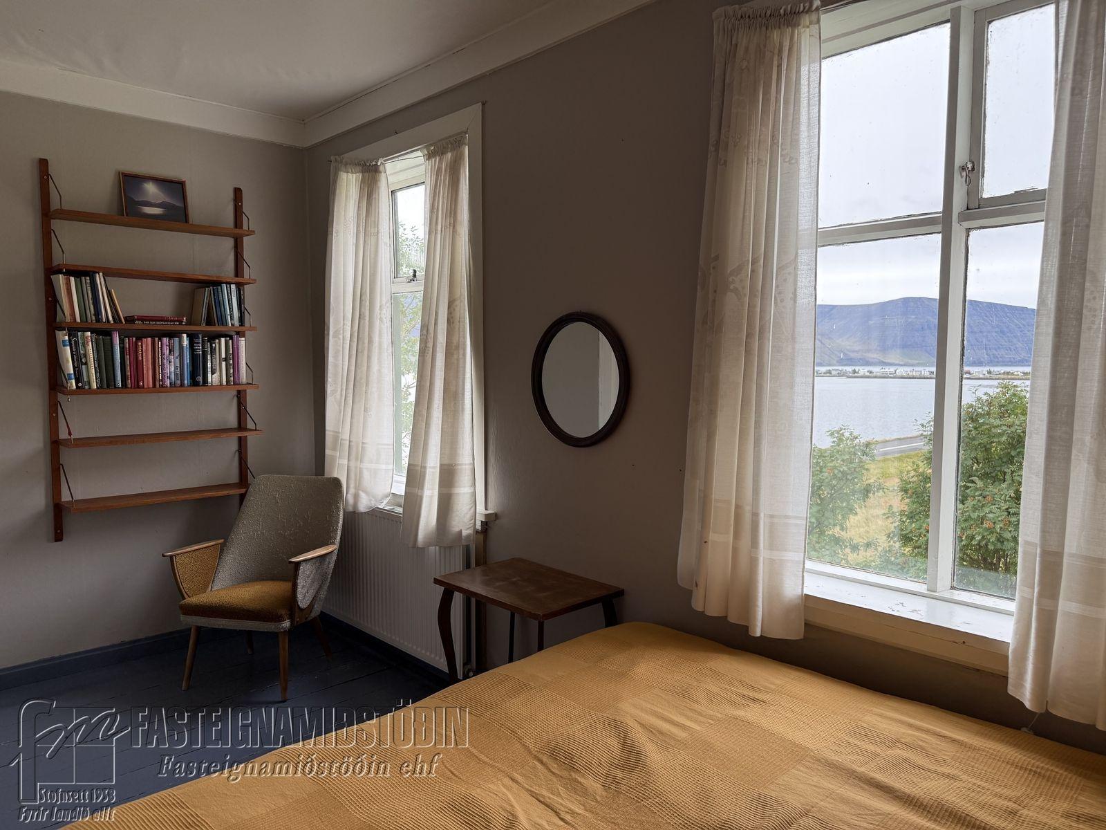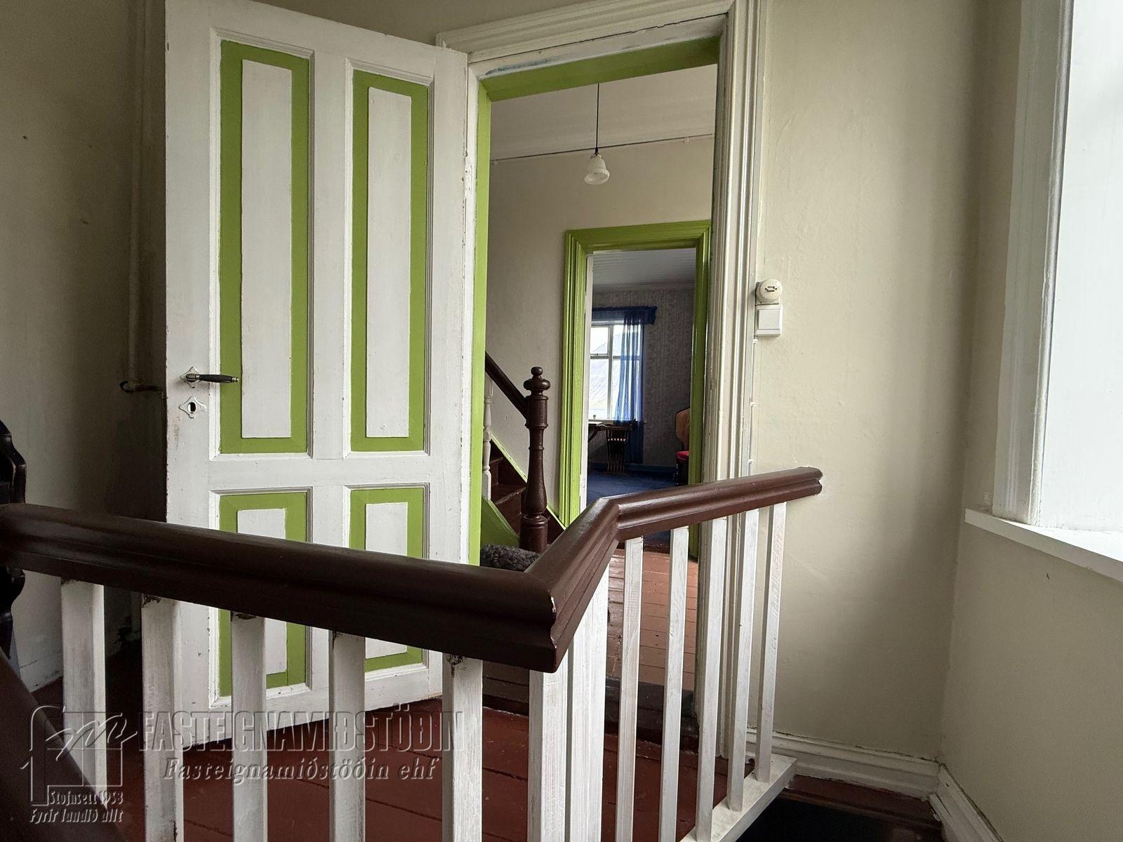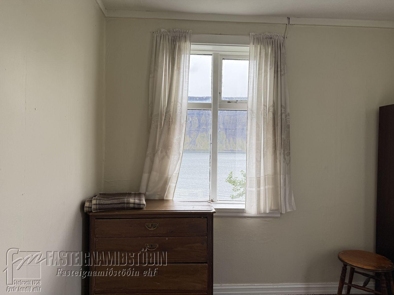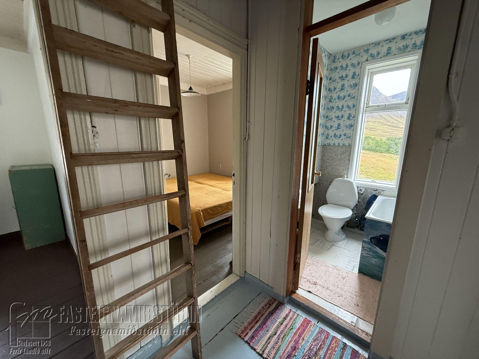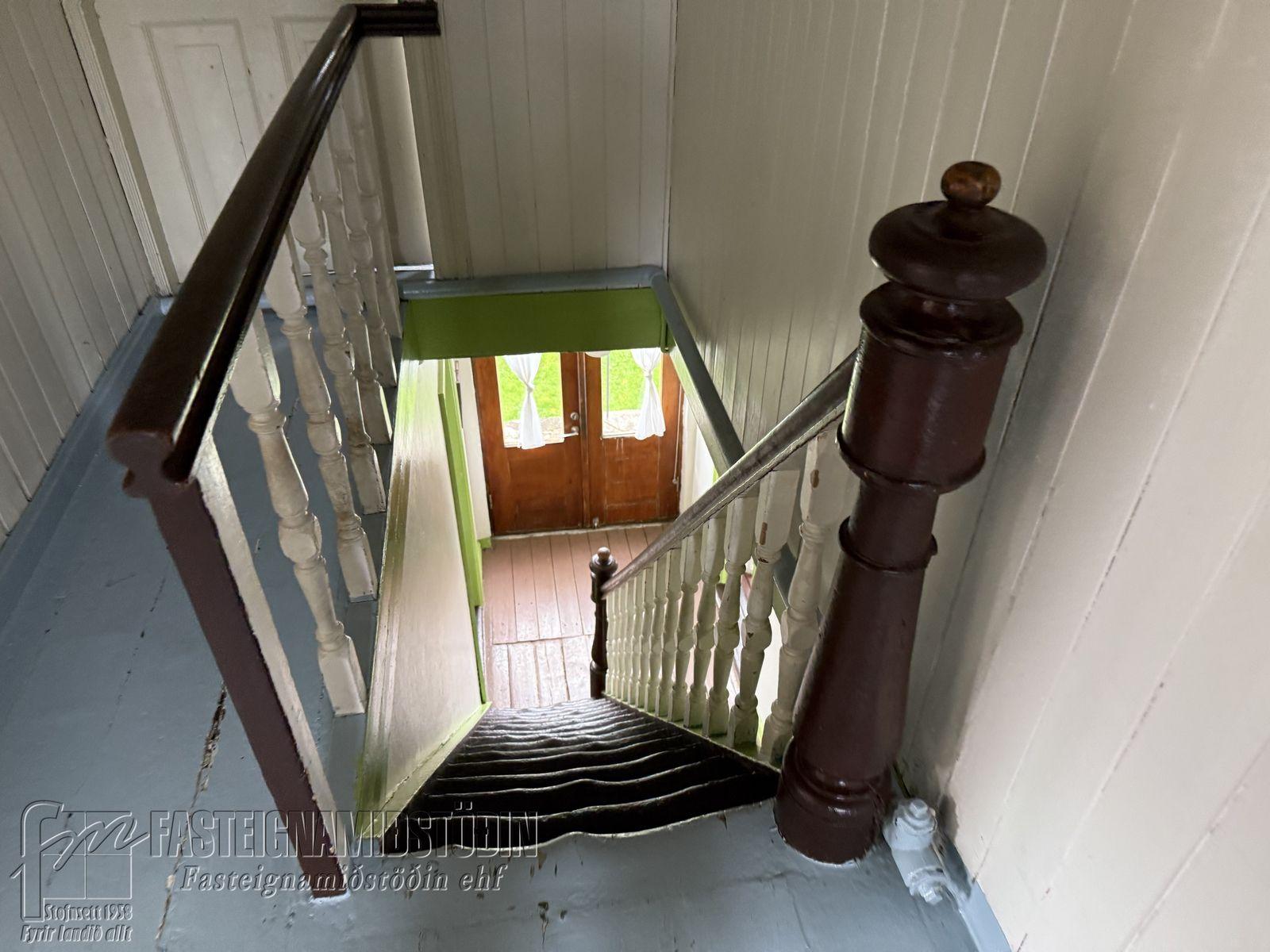 Á fyrstu hæð eru rúmgott eldhús, tvær stofur, WC og lítið herbergi þar sem settar hafa verið nýjar timburtröppur með handriði niður í kjallara. Á efri hæð eru sex misstór svefnherbergi með svefnplássi fyrir 2-4 og lítið baðherbergi.