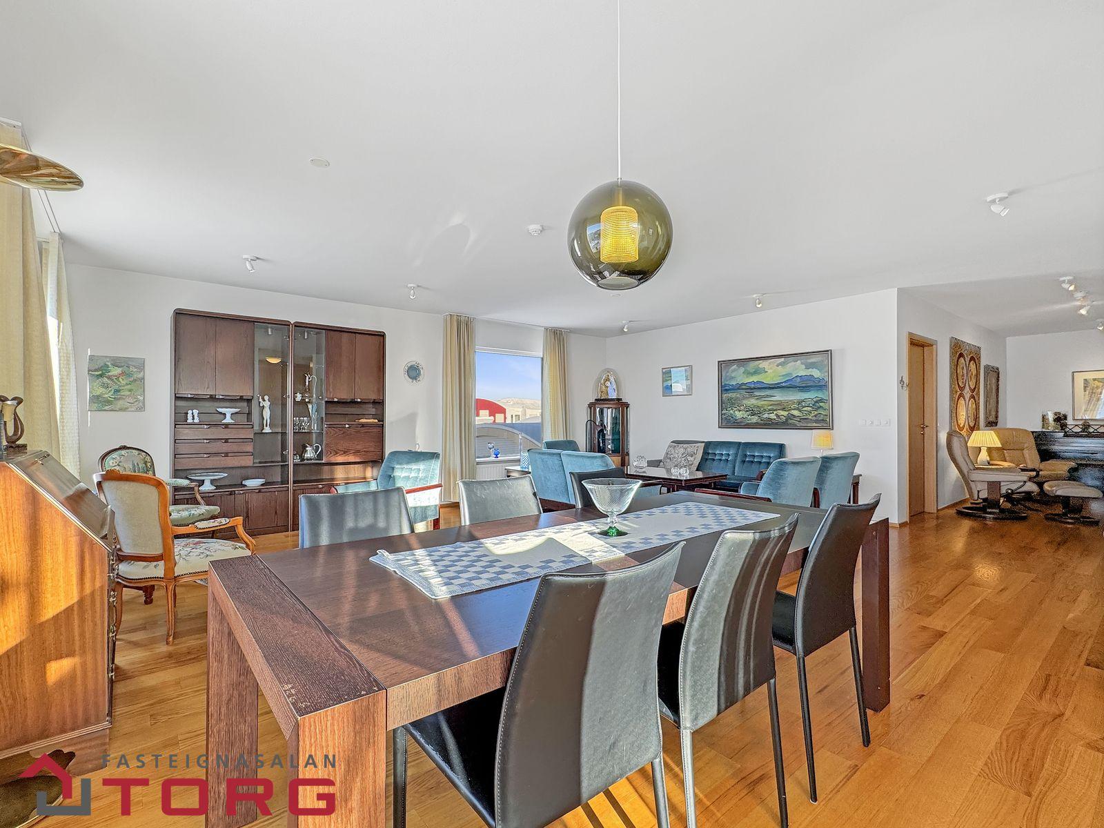 Fasteignasalan TORG kynnir: Rúmgóð og björt endaíbúð á fimmtu hæð með fallegu útsýni við 17. Júnítorg í Garðabæ. Eignin er skráð 122,5 fm og skiptist í forstofu, sjónvarpshol, svefnherbergi, stofu/borðstofu, baðherbergi, þvottahús og geymslu í kjallara. Úr stofu er gengið út á 6,2 fm svalir. Eigninni fylgir bílastæði í lokuðum bílakjallara. Lyfta er í húsinu. Kvöð er í húsinu um að íbúar séu 50 ára eða eldri. Allar nánari upplýsingar veitir Darri Örn Hilmarsson, löggiltur fasteignasali, í síma: 767-0000 eða með tölvupósti: darri@fstorg.is