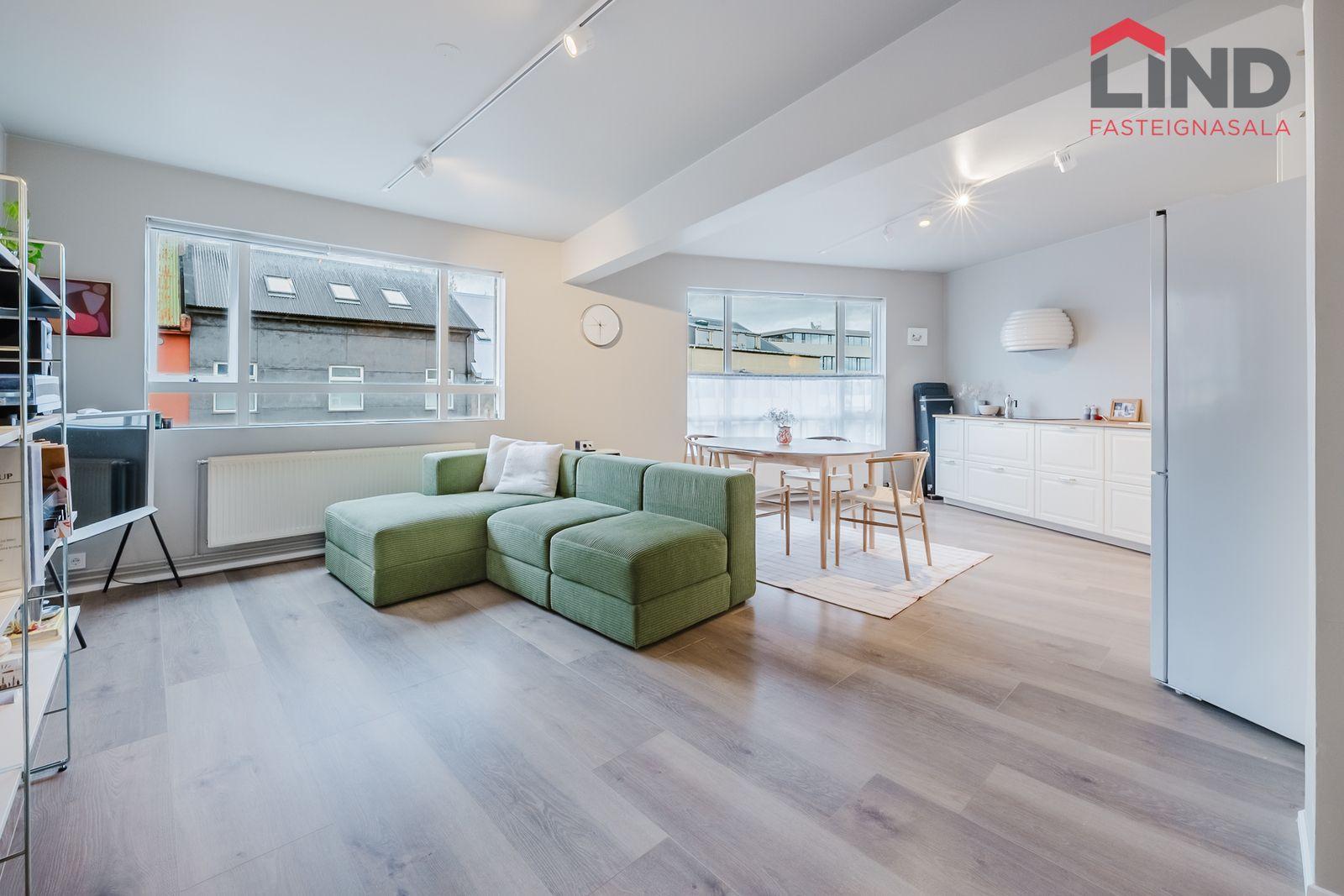 Ekki er lyfta í húsinu.Laugavegur 133, 105 Reykjavík, nánar tiltekið eign merkt 03-01, fastanúmer 200-9736 ásamt öllu því sem eigninni fylgir, þar með talið tilheyrandi lóðar og sameignarréttindi.