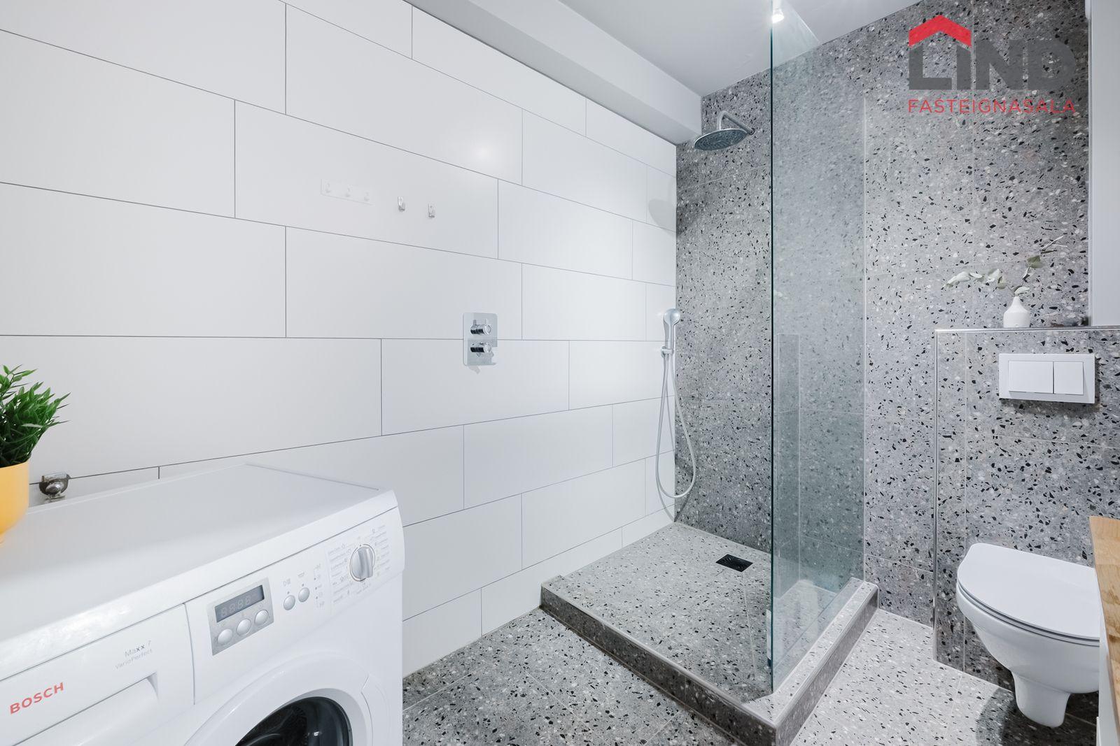 Baðherbergið hefur verið endurnýjað á afar smekklegan máta með flísum í hólf og gólf, góðri walk in sturtu, upphengt salerni og rými/tengi fyrir