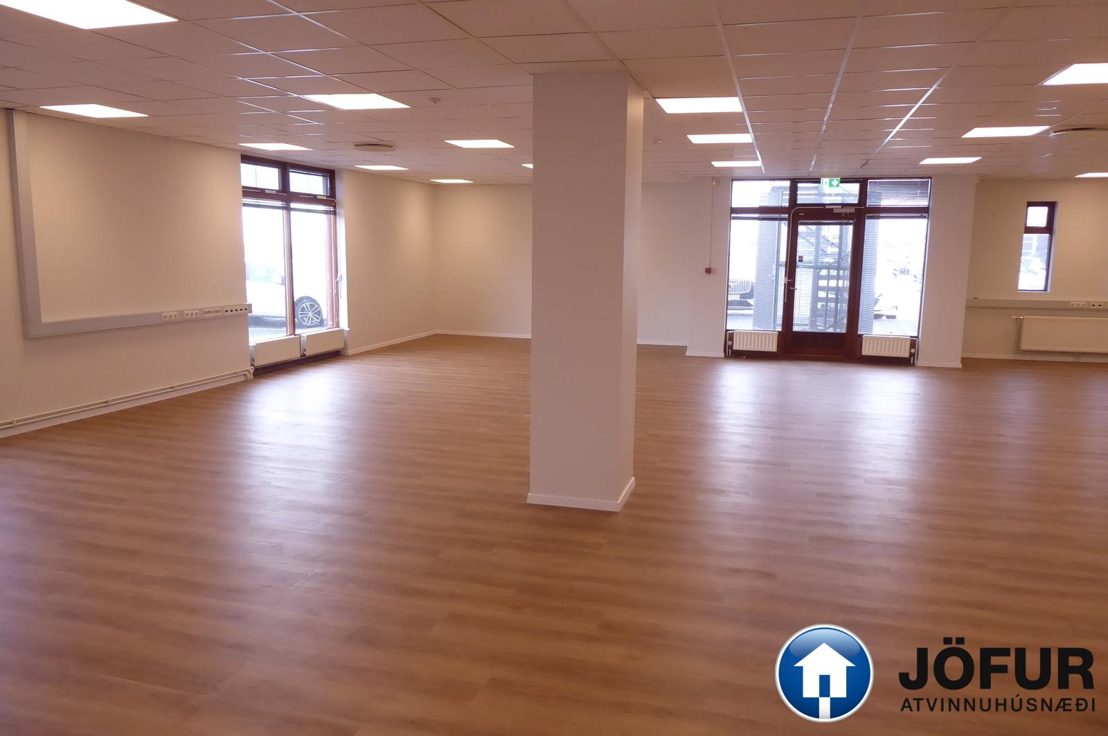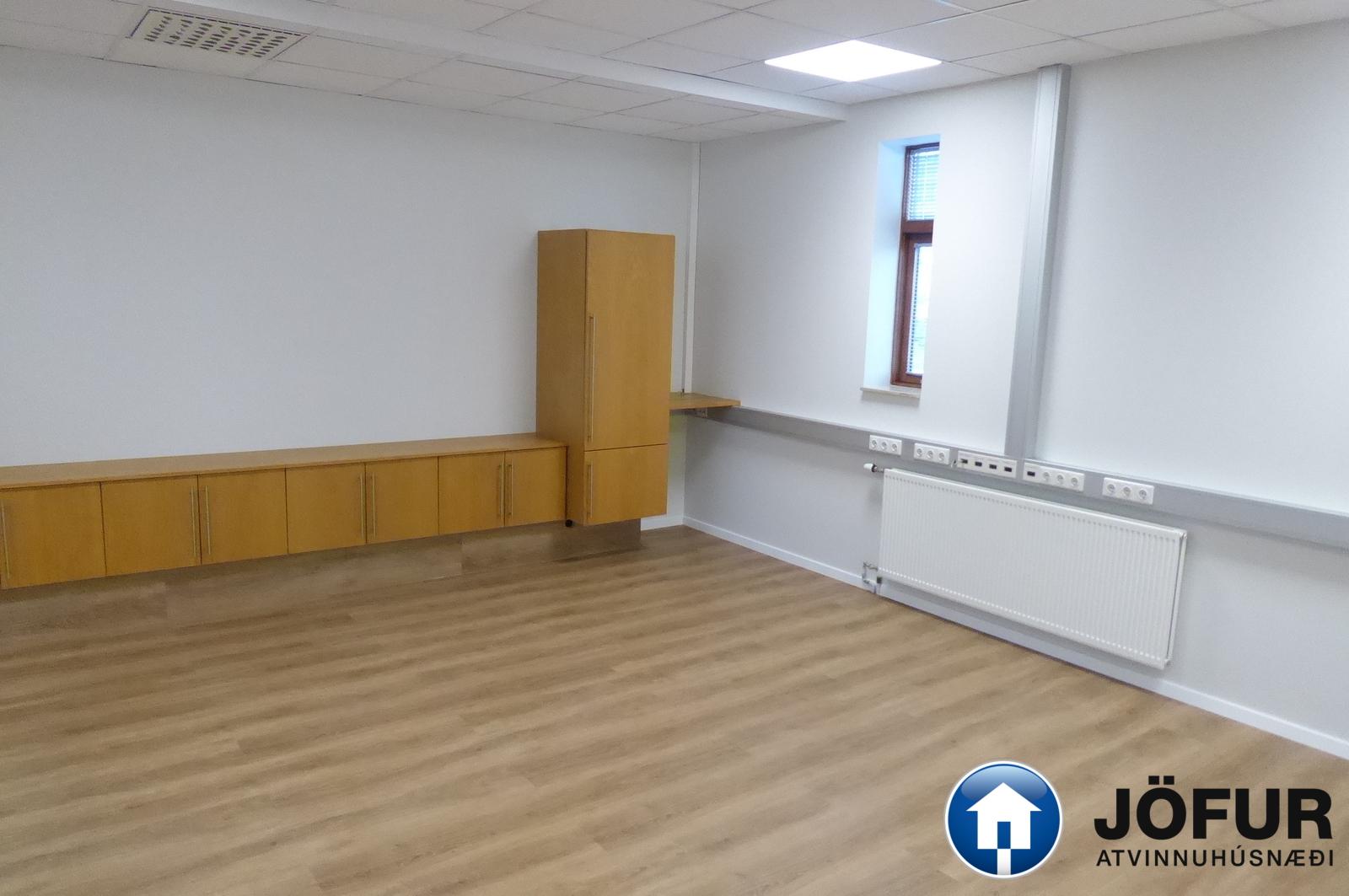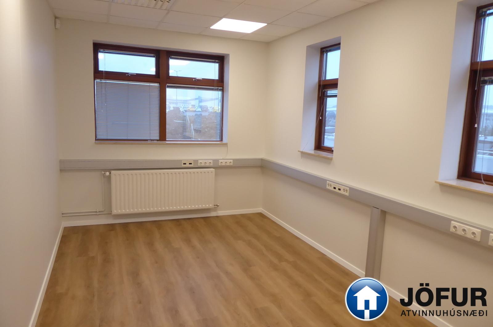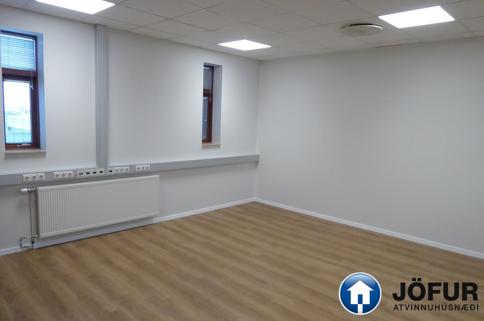 Skiptist upp í opin vinnurými og 5 lokaðar skrifstofur/fundaherbergi. Kerfisloft með kerfisloftalýsingu, vínilparket á gólfum og tölvulagnir í stokkum. Í húsinu er aðgagnsstýringarkerfi. Mögulegt er að vera með móttökuritara á jarðhæð við inngang. Næg bílastæði eru við húsið og gott aðgengi.