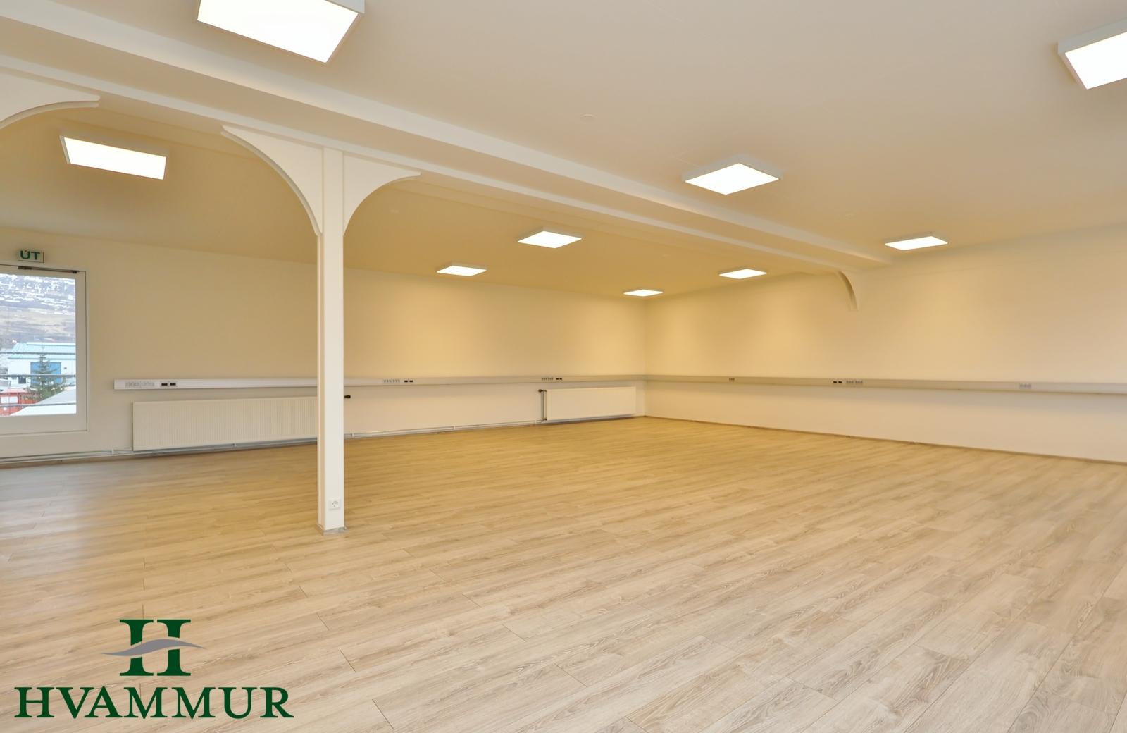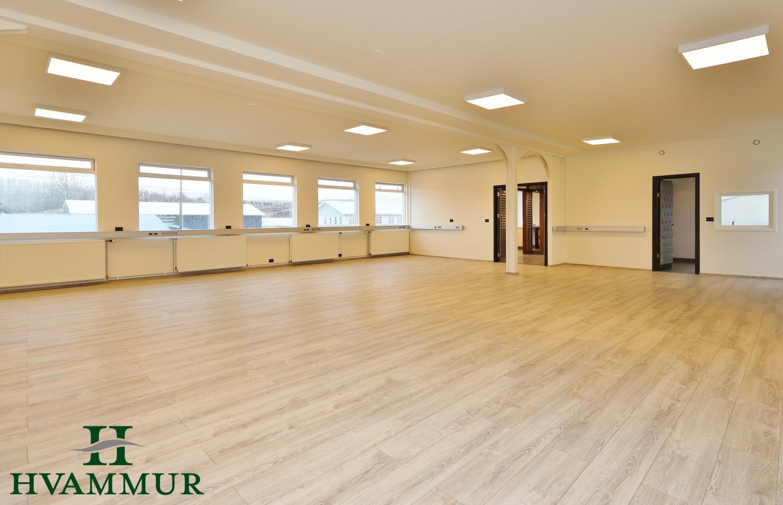 Annað: - Rúmgóður salur sem gæti nýst sem til dæmis skrifstofur eða veislusalur. - Ljósleiðari er komin inn og tengdur. - Nýtt Harðparket lagt á allan salinn í lok árs 2024. - Ný lýsing í salnum síðan í lok árs 2024 - Ný gler eru í gluggum á norðurhlið, einnig hefur verið skipt um opnanleg fög. - Eignin er ný máluð.