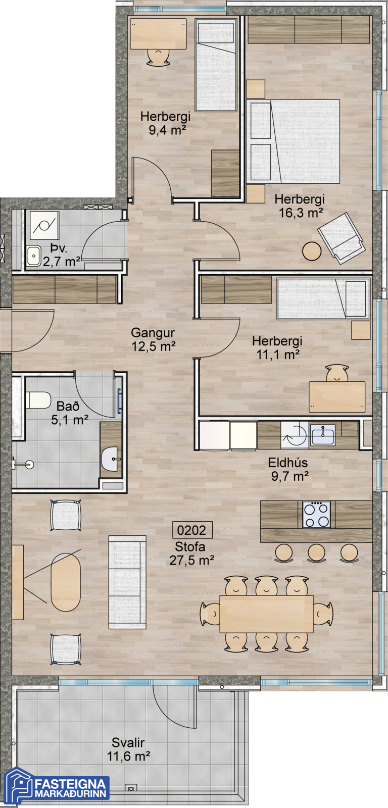 Allar nánari upplýsingar og tímapantanir á skoðun íbúða í húsinu er að fá á skrifstofu Fasteignamarkaðarins ehf. í síma 570-4500 eða á netfanginu fastmark@fastmark.is