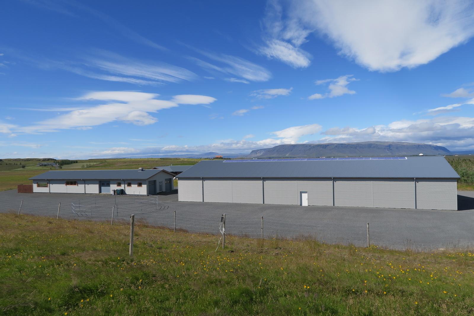 Single-story house 158.2 m2 built in 2010, divided into an entrance hall, living room, and kitchen in a shared open space, a TV room, and three bedrooms. Two tiled bathrooms have access to a hot tub on the deck. The house is clad with larch cladding. On the land, there is a 279 m2 building built in 2011, consisting of a 70,7 m2 horse stable, 68,6 m2 barn and sitting area, 68,6 m2 garage/storage, and 71,1 m2 apartment. A riding path surrounds the land. Beautiful riding hall, 700 m2 built in 2011. The property is located approximately a 10-minute drive from Selfoss and an hour's drive from Reykjavik and about 1.5 hour from the international airport in Keflavík.