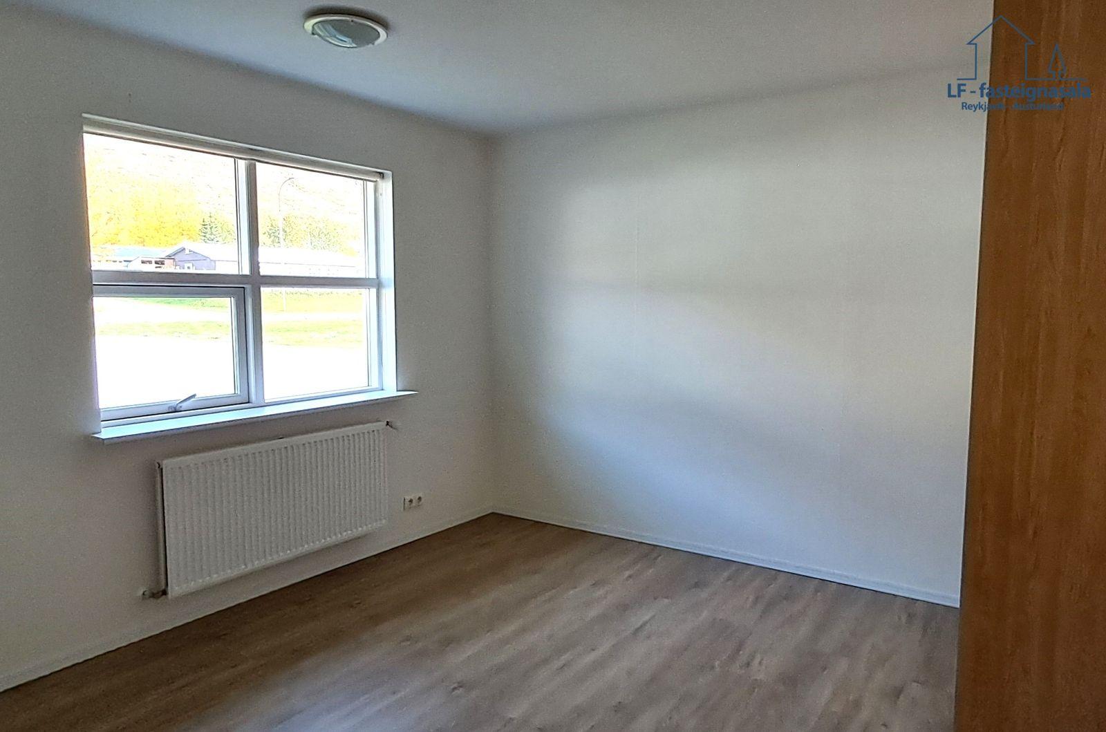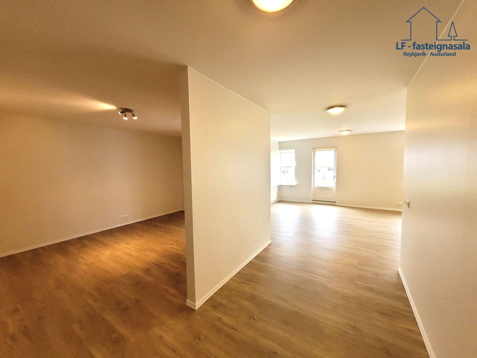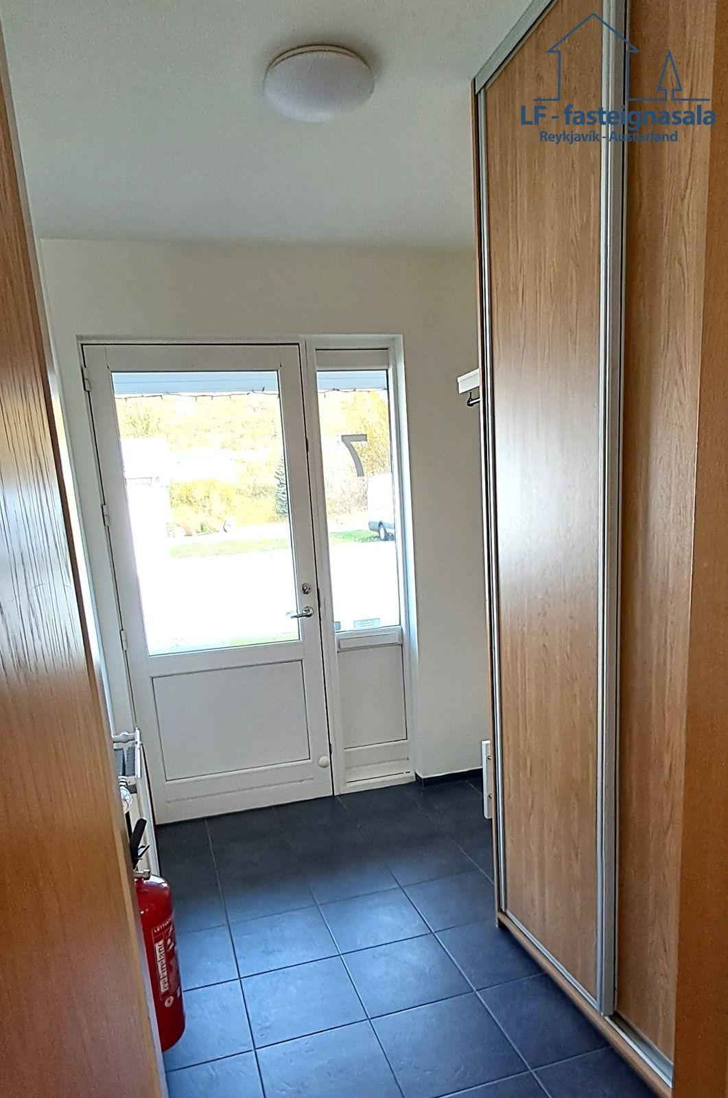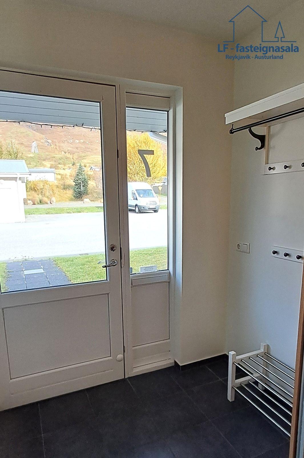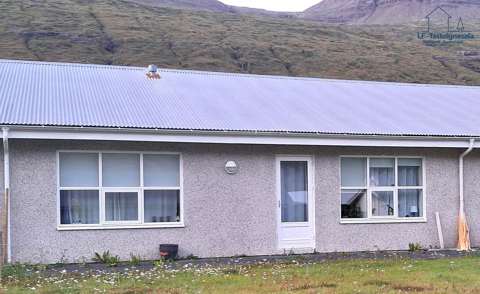 Lf-fasteignasala/Lindin fasteignir s. 893-1319 og Þórdís Pála Reynisdóttir löggiltur fasteignasali thordis@lindinfasteignir.is kynna: Langidalur 7, Eskifirði Íbúðin er í útleigu og verður sýnd í lok september og getur verið laus til afhendingar fljótlega eftir það. 3ja herb., 157,0 fm, raðhús ásamt bílskúr við Langadal í Fjarðabyggð Íbúð er skráð 120,0 fm og bílskúr 37,0 fm, alls 157,0 fm Lýsing eignar: Anddyri með fataskáp, flísar á gólfi. Stórt samliggjandi rými sem í er eldhús, sjónvarpshol og stofa ásamt gangi. Vínyl parket á gólfum. Samkvæmt teikningu eru tvö rúmgóð svefnherbergi með skápum í íbúðinni en aukaherbergi hefur verið bætt við í hluta stofunnar. Vínyl parket er á herbergisgólfum. Baðherbergi, flísalagt, baðkar með sturtu, sturtuklefi, lítil innrétting. Flísar á gólfi. Þvottahús innan íbúðar. Flísar á Gólfi. Dyr eru úr stofu út í bakgarðinn. Hellulögð verönd er meðfram bakhlið hússins. Bílskúrinn er staðsettur í 5 bílskúra lengju á lóðinni. Hitaveita kyndir íbúðina og bílskúrinn og hefur verið mjög hagstætt að kynda íbúðir í lengjunni. Vel rekið húsfélag er starfrækt í raðhúsalengjunni og er greitt hóflegt gjald í framkvæmdasjóð.