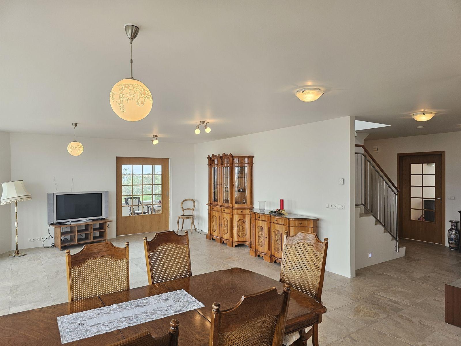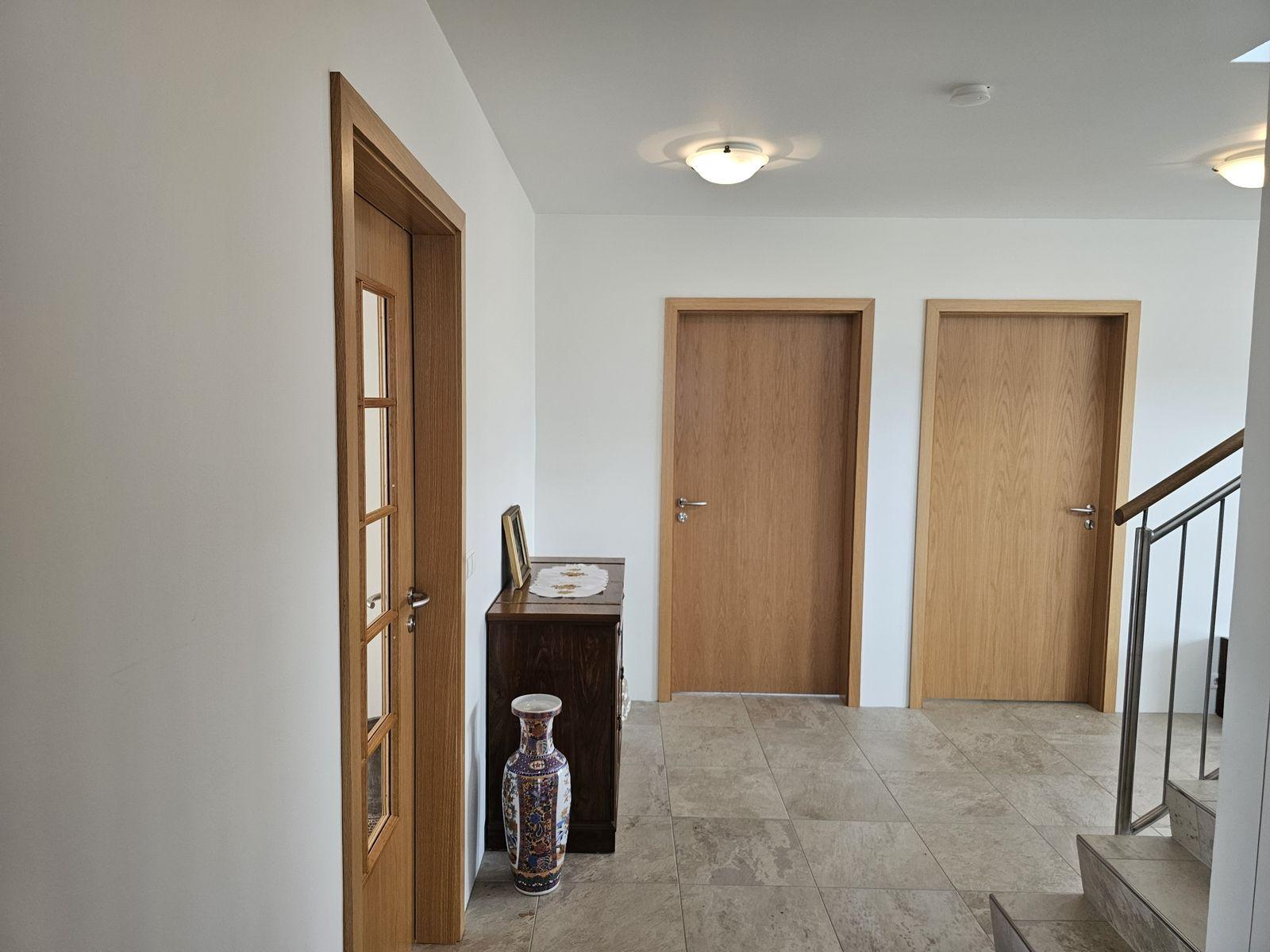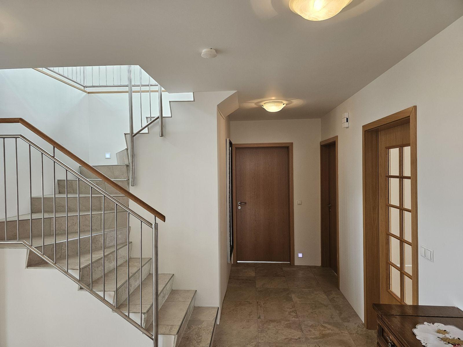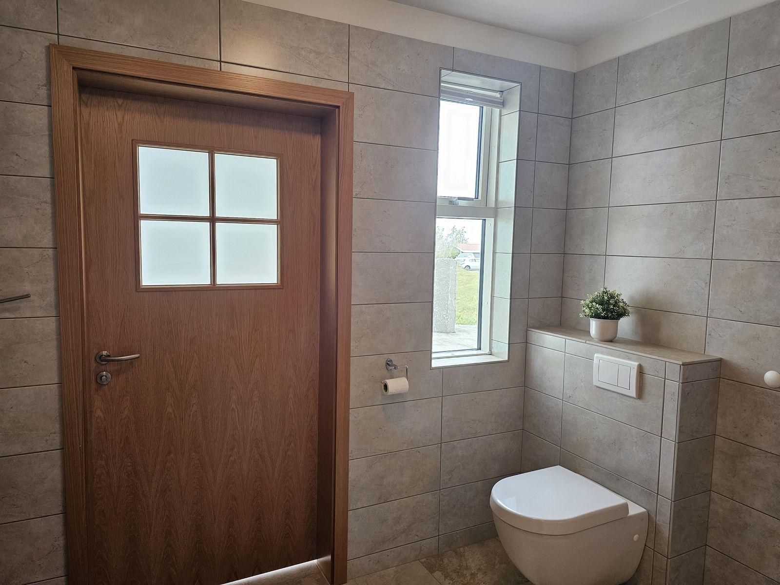 Nánari lýsing 1. hæð: Anddyri: Mjög rúmgóður fataskápur. Gestasnyrting: Er inn af anddyri. Spegill yfir vaski, flísar á veggjum og vegghengt salerni. Hol: Þaðan er gengið upp flísalagðar tröppur á efri hæðina og í herbergi, baðherbergi og alrými og þvottahús. Svefnherbergi: Eru 2, mjög rúmgóð og bæði með fataskápum. Baðherbergi: Er flísalagt í hólf og gólf með fallegri innréttingu . Vegghengt salerni, tvær handlaugar, speglaskápur og walk-in flísalagður sturtuklefi. Gengt er úr baðherbergi í sólstofu. Sólstofa: Mikið útsýni og þaðan er gengt út á steypta verönd. Einnig innangengt um veglega rennihurð með frönskum gluggum í stofuna. Stofur: Eru bjartar og rúmgóðar með miklu útsýni yfir Borgarfjörð. Úr borðstofunni er gengið út á steypta veröndina. Eldhús: Vönduð og rúmgóð innrétting (eik). Eyja með skápum og borði til að matast við. Bakarofn og örbylguofn í vegg og helluboð í borðplötu. Þvottahús: Er flísalagt í hólf og gólf með góðri innréttingu. Úr þvottahúsi er innangengt í bílskúrinn og einnig út á baklóðina. Stigi: Upp á efri hæð er flísalagður, handrið úr ryðfríu stáli og harðviður.