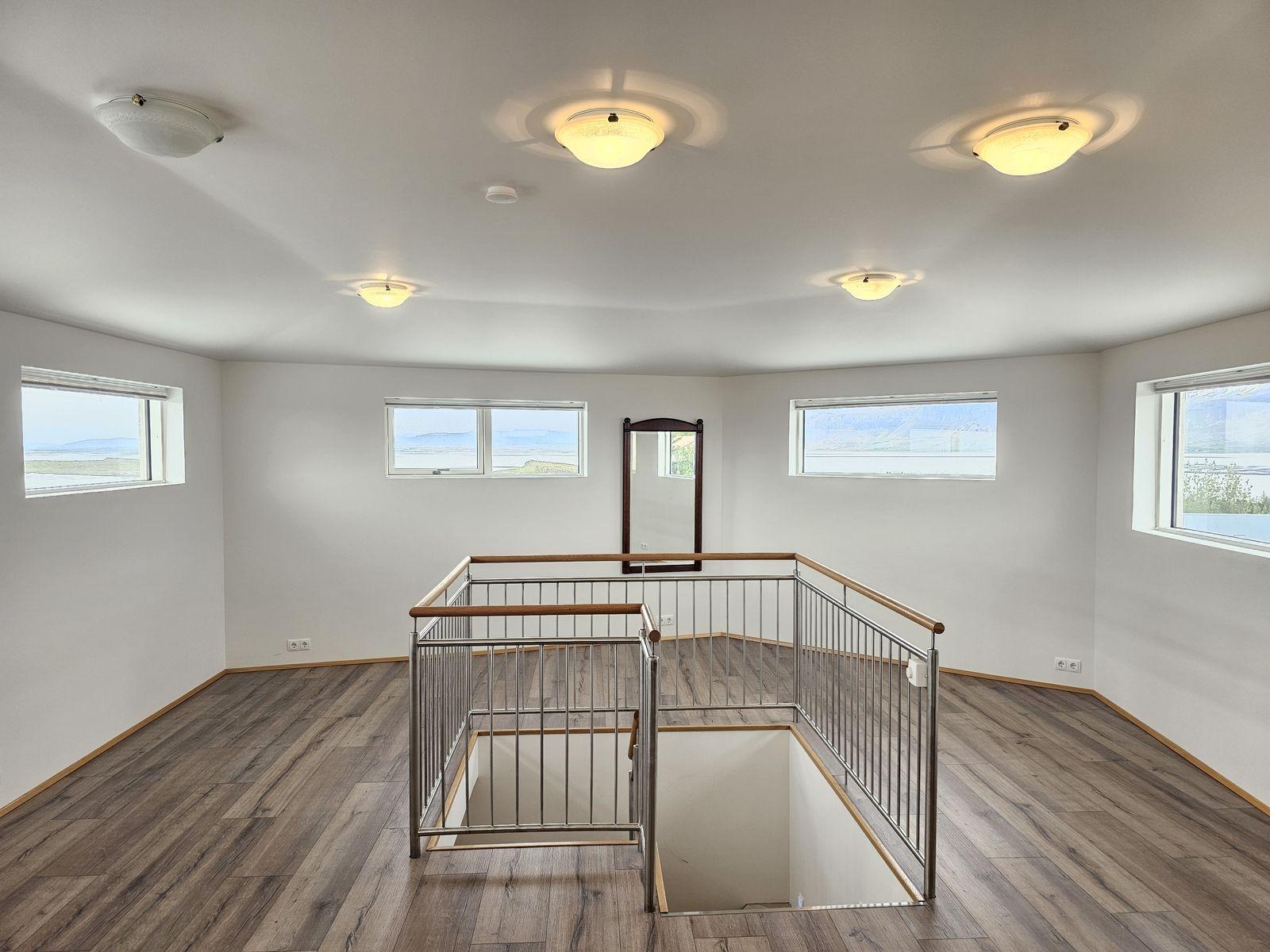 2. hæð: Opið rými: Með útsýni til allra átta en þar mætti auðveldlega útbúa 2 svefnherbergi til viðbótar.