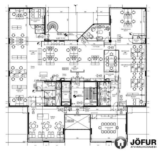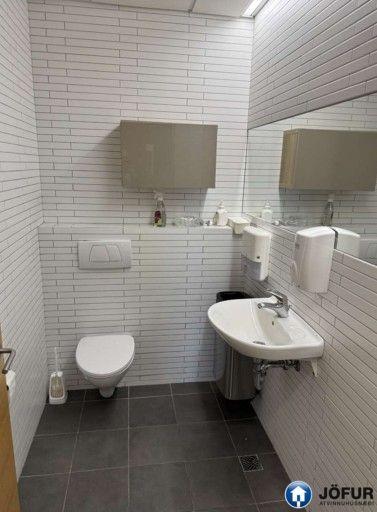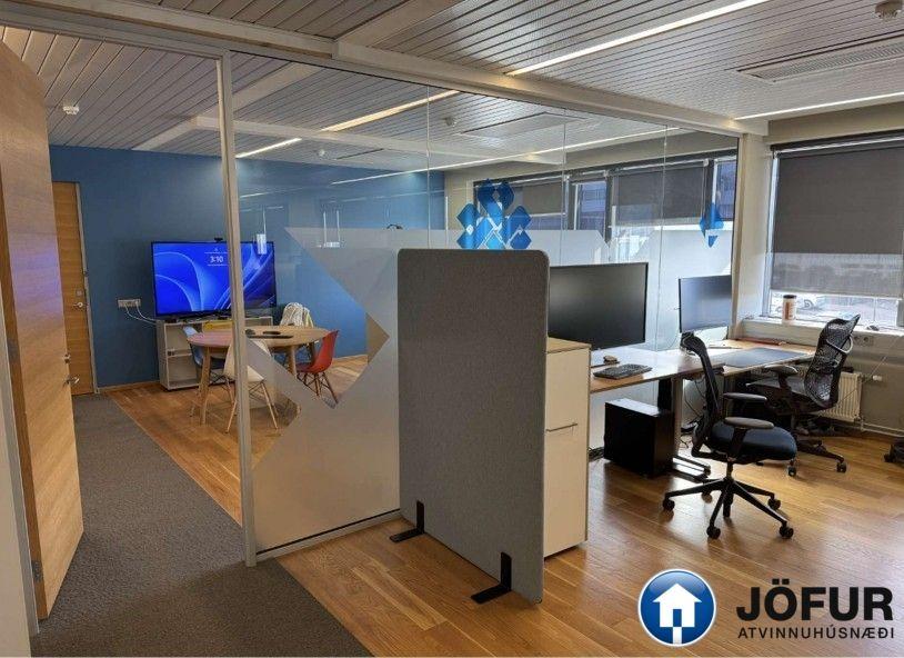Húsnæðið skiptist í tvö stór opin vinnurými, lokuð minni skrifstofuherbergi, eitt stórt fundarherbergi og annað minna, símaherbergi, stóra kaffistofu/ eldhús, móttöku, setustofu og tæknirými. Wc í sameign á hæðinni. Auðvelt er að breyta veggjaskipan í húsnæðinu. Skrifstofurýmið er einstaklega bjart með glugga á fjóra vegu og býður upp á stórbrotið útsýni, óhindrað til sjávar og fjalla. Frábær staðsetning í einu helsta viðskiptaumhverfi Reykjavíkur með afbragðs almenningssamgöngum, mikið af veitingastöðum og öll þjónusta í nágrenninu. Næg bílastæði á lóð hússins.