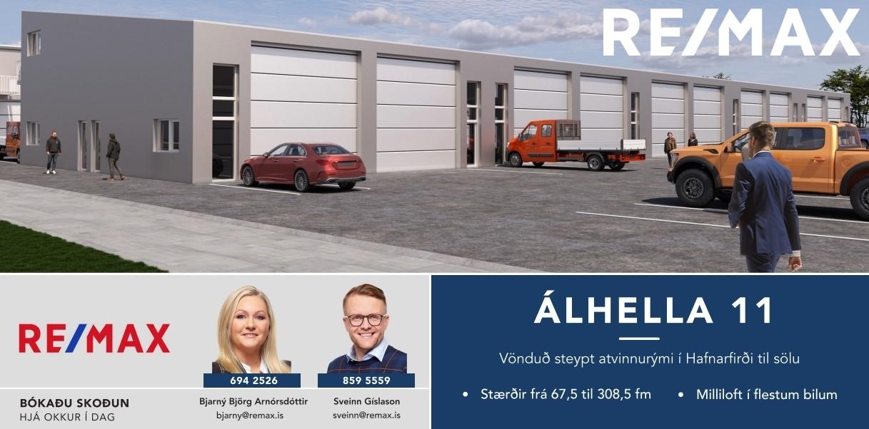 RE/MAX, Bjarný Björg Arnórsdóttir Lgf & Sveinn Gíslason Lgf kynna: Vandað og fullbúið atvinnuhúsnæði á góðum stað í Hafnafirði. Húsið er steypt og er klætt samlokueiningum á útveggjum og þaki. Húsið skiptist í 10 séreiningabil og eitt sameiginlegt inntaksrými. Bilin eru skráð sem geymsluhús með möguleika á að breyta í atvinnuhúsnæði. Samkvæmt deiluskipulagi er gert ráð fyrir grófum iðnaði á svæðinu.