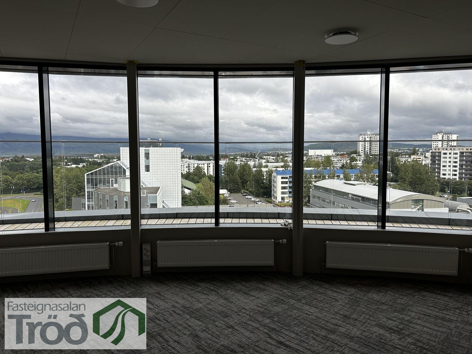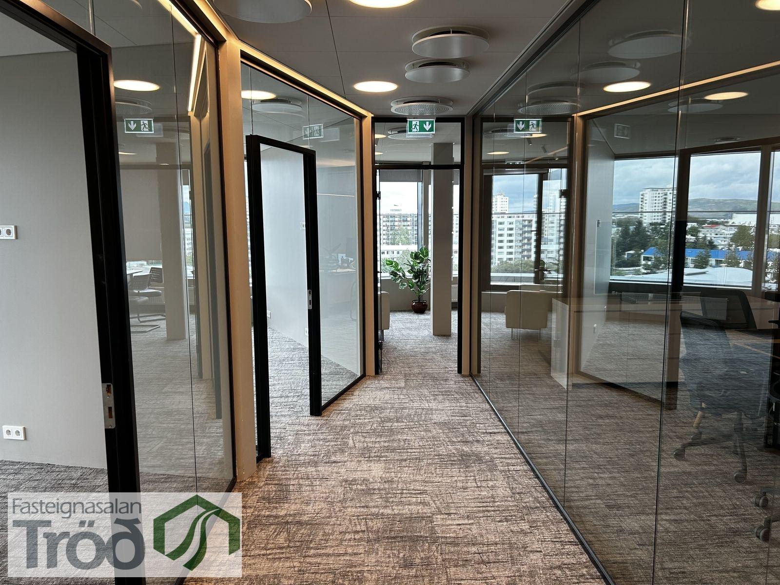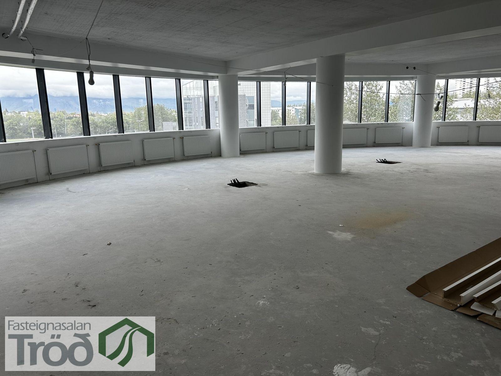 Erum með 455m² brúttó skrifstofuhúsnæði til leigu og afhendingar strax óinnréttað (blautrými fullfrágengið), eða innréttað eftir þörfum leigjanda skv. samkomulagi. Um er að ræða húsnæði á 2-5. hæð í nýja "turninum" á móts við Glæsibæ með fallegu útsýni til vesturs og norðurs að Esjunni. Snyrtingum eða blautrými veður skilað fullbúnu með flísum á gólfi, niðurteknum loftum og öllum hreinilætistækjum þ.á.m. sturtu á annari snyrtingunni. Að öðru leyti er hægt að fá hæðirnar fullbúnar t.d. með teppaflísum á góflum, niðurteknum loftum, glerveggjum með álrömmum í fundar- og skrifstofuherbergjum og lýsingu í loftum. Öflug hljóðlaus loftræsting er í húsinu.. Meðfylgjandi myndir gefa hugmynd að frágangi á hæðunum, en þær eru af hæð sem er núþegar komin í notkun. Á hverri hæð er innangengt út á stórar suðursvalir, úr rými þar sem er gert ráð fyrir veglegri kaffi- og fundaraðstöðu (sjá teikningu). Í sameign, sem er flíslögð, eru 2 lyftur sem ganga niður í bílakjallara sem er á 2 hæðum. Næg bílstæði eða 183 stæði er í bílakjallaranum, sem þjónar öllu húsinu og er stýrt í gegnum Parka appið, sem býður upp á greiðslur fyrir viðveru innan dagsins, eða til lengri tíma. Athugið að ennþá hægt að taka 2, eða fleiri hæðir á leigu fyrir fyrirtæki sem þurfa meira pláss. Áhugasamir hafið samband við sölumenn okkar og pantið skoðun í s. 511-2900.