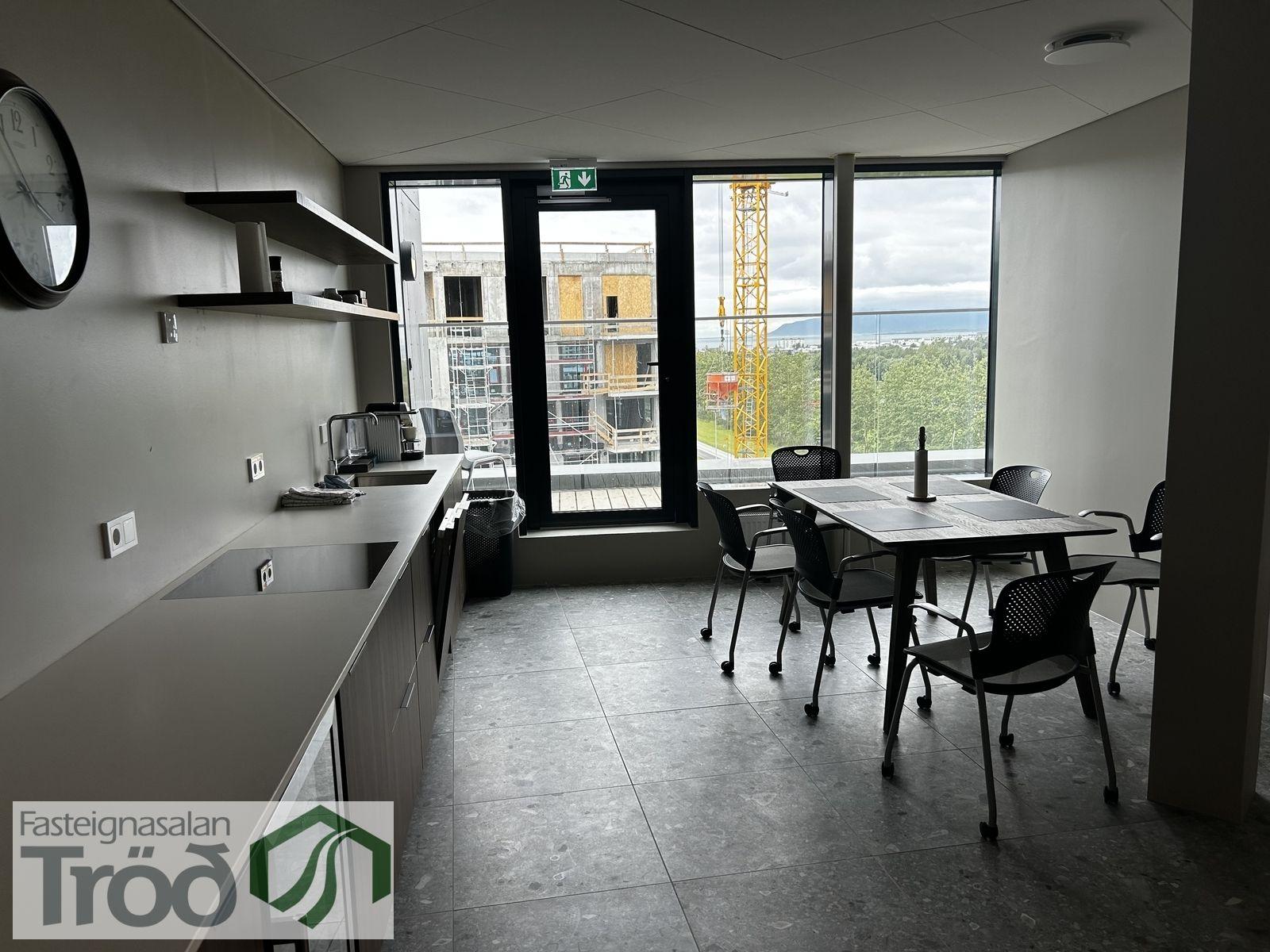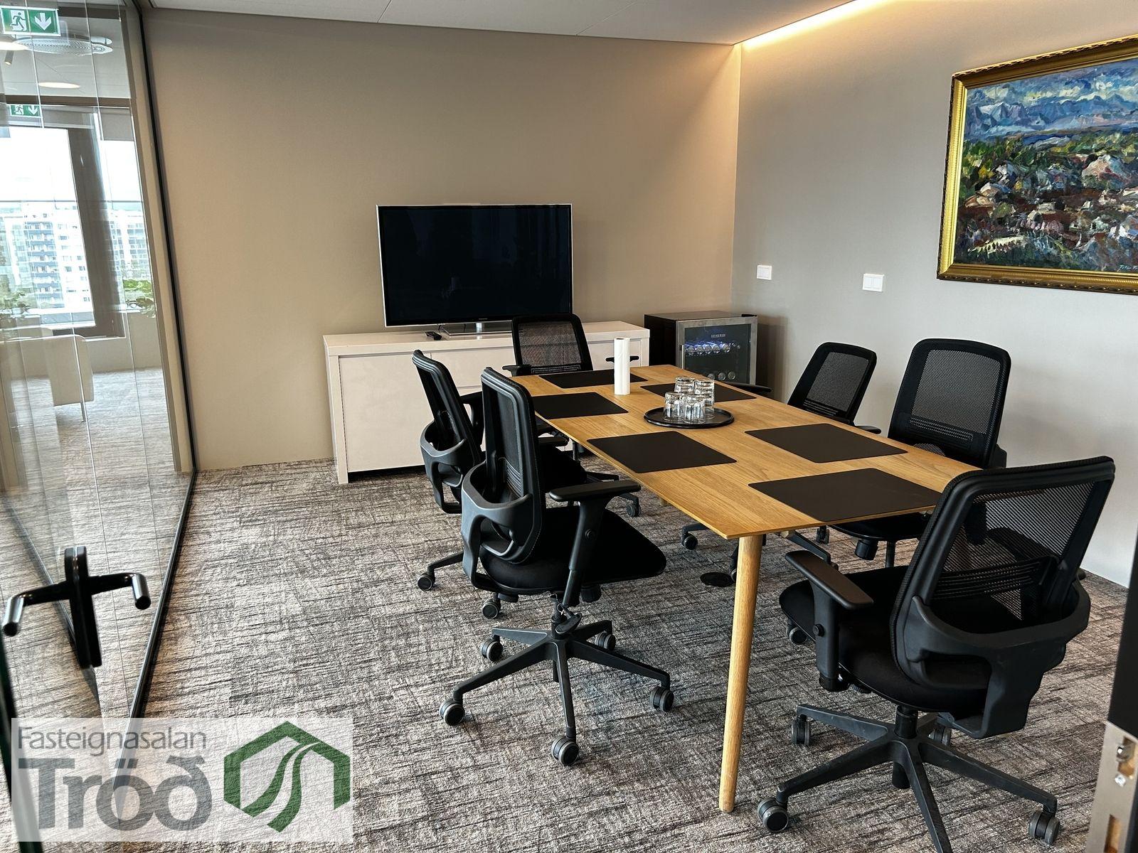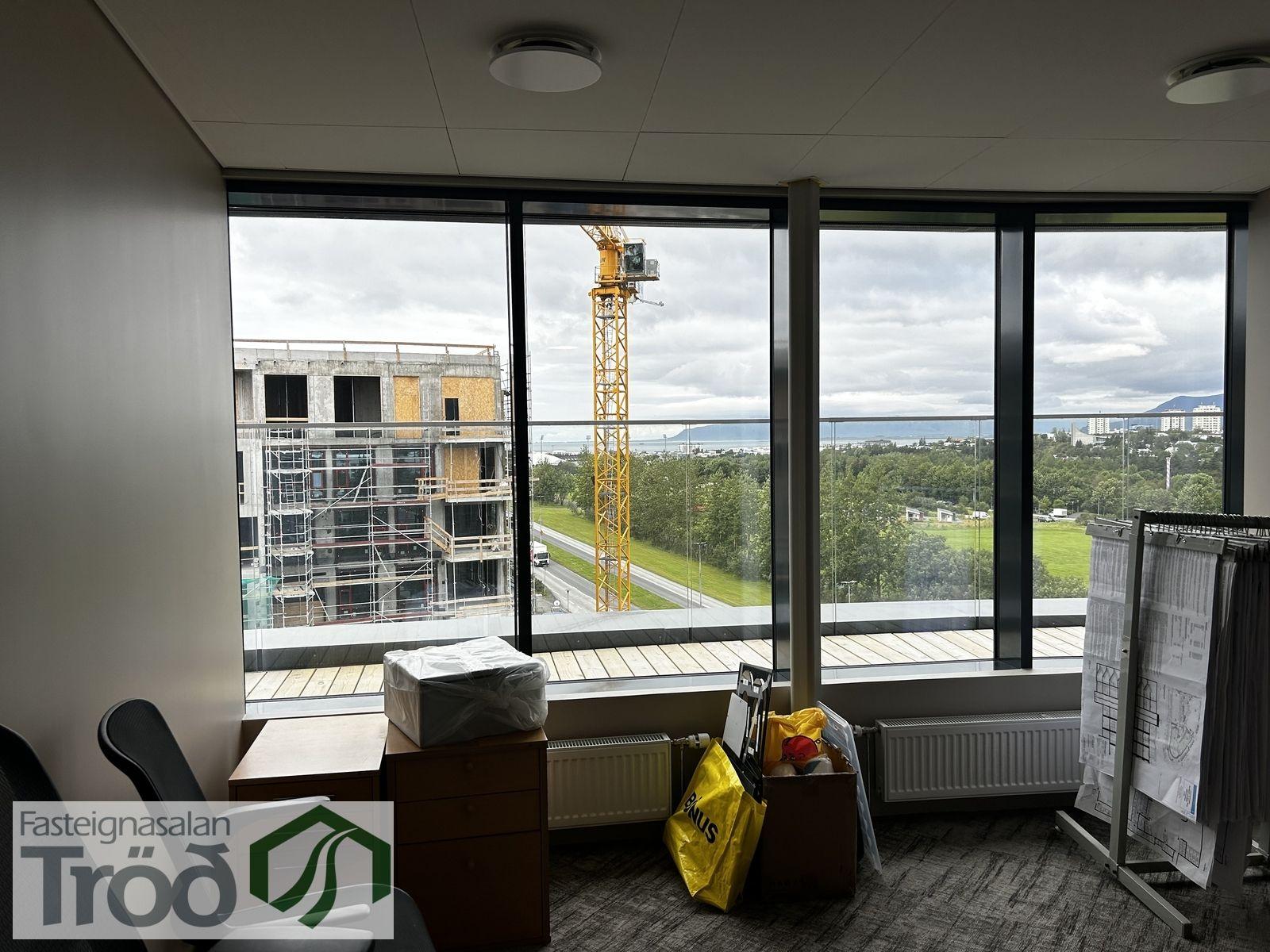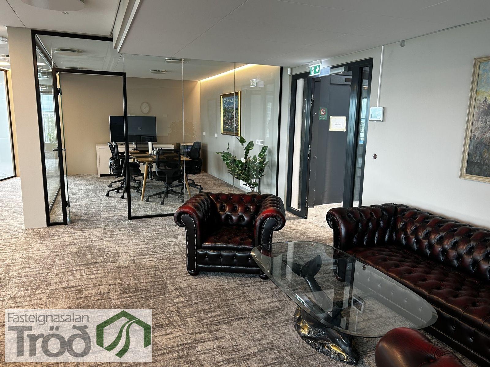 Erum með 455m² brúttó skrifstofuhúsnæði til leigu og afhendingar strax óinnréttað (blautrými fullfrágengið), eða innréttað eftir þörfum leigjanda skv. samkomulagi. Um er að ræða húsnæði á 2-5. hæð í nýja "turninum" á móts við Glæsibæ með fallegu útsýni til vesturs og norðurs að Esjunni. Snyrtingum eða blautrými veður skilað fullbúnu með flísum á gólfi, niðurteknum loftum og öllum hreinilætistækjum þ.á.m. sturtu á annari snyrtingunni. Að öðru leyti er hægt að fá hæðirnar fullbúnar t.d. með teppaflísum á góflum, niðurteknum loftum, glerveggjum með álrömmum í fundar- og skrifstofuherbergjum og lýsingu í loftum. Öflug hljóðlaus loftræsting er í húsinu.. Meðfylgjandi myndir gefa hugmynd að frágangi á hæðunum, en þær eru af hæð sem er núþegar komin í notkun. Á hverri hæð er innangengt út á stórar suðursvalir, úr rými þar sem er gert ráð fyrir veglegri kaffi- og fundaraðstöðu (sjá teikningu). Í sameign, sem er flíslögð, eru 2 lyftur sem ganga niður í bílakjallara sem er á 2 hæðum. Næg bílstæði eða 183 stæði er í bílakjallaranum, sem þjónar öllu húsinu og er stýrt í gegnum Parka appið, sem býður upp á greiðslur fyrir viðveru innan dagsins, eða til lengri tíma. Athugið að ennþá hægt að taka 2, eða fleiri hæðir á leigu fyrir fyrirtæki sem þurfa meira pláss. Áhugasamir hafið samband við sölumenn okkar og pantið skoðun í s. 511-2900.