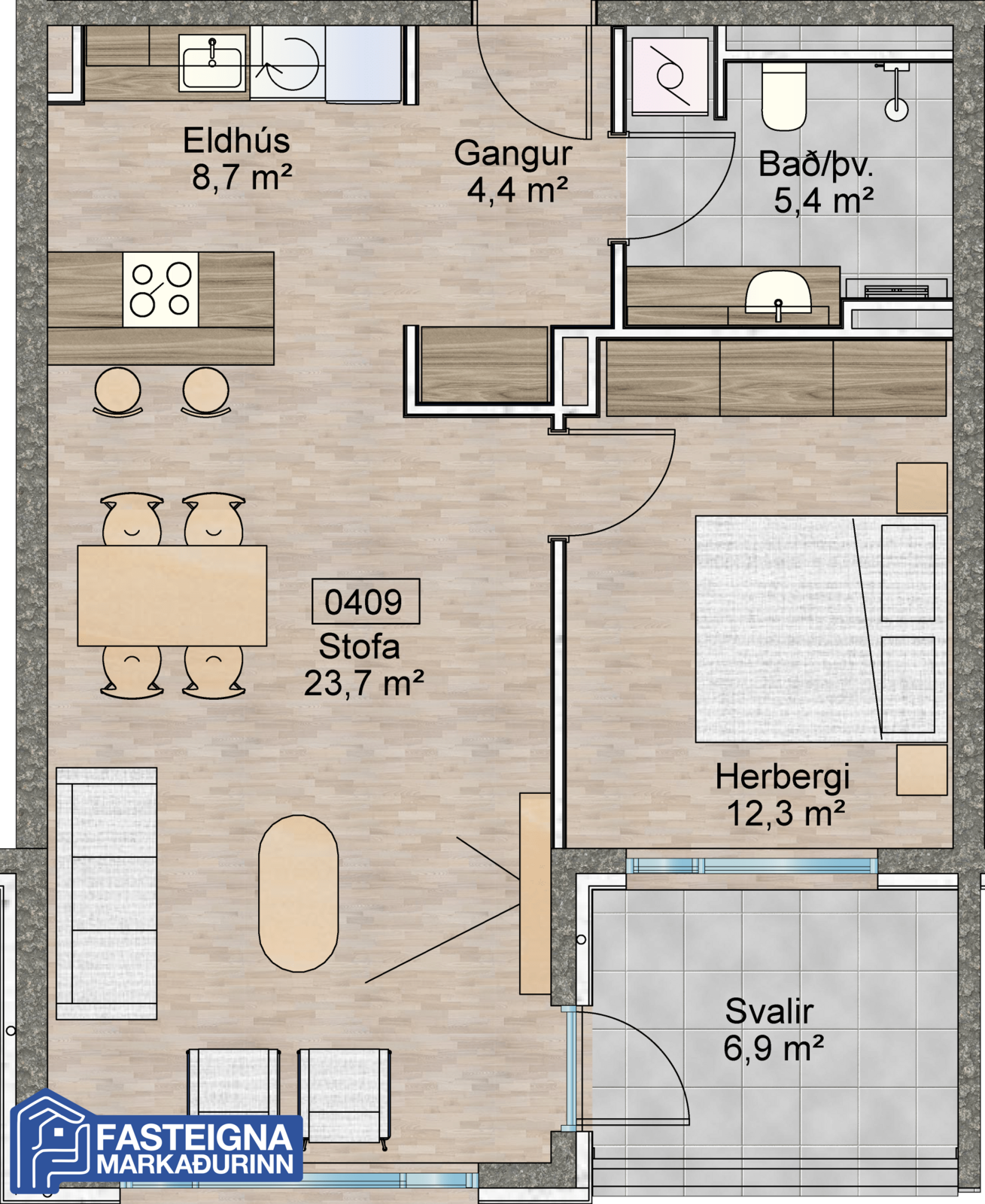 • Þar sem minnst er á gerð tækja í innréttingum í skilalýsingu er átt við tæki af sambærilegri gerð og gæðum. Sama á við um birgja og efnissala. Seljandi áskilur sér rétt til breytinga á byggingartímanum en er þá miðað við sambærilega vöru.