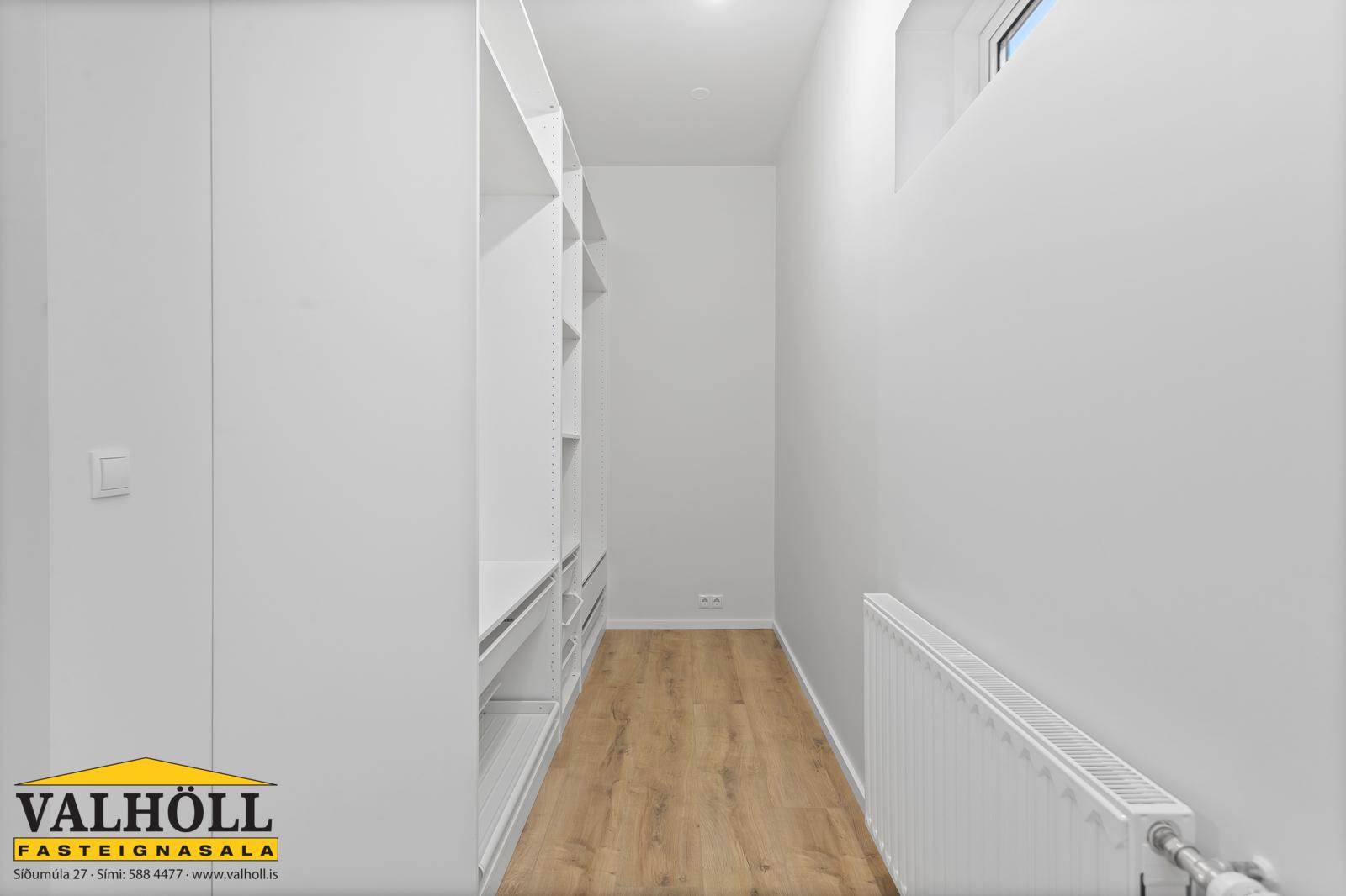 Geymsla: rúmgóð geymsla er innaf forstofu með með flísum á gólfi. Hægt er að nýta sem herbergi.