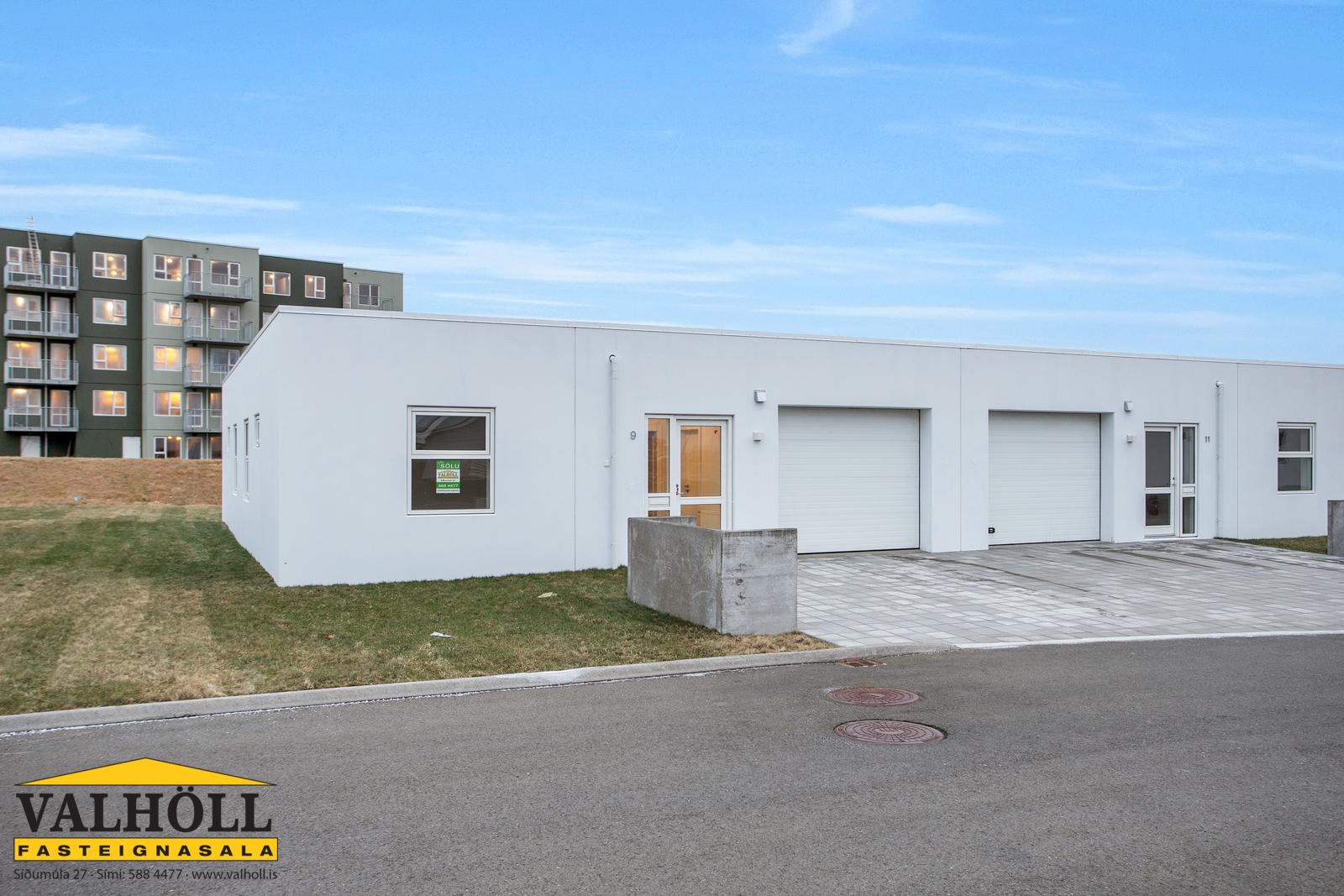 Parhús á einni hæð með bílskúr byggt úr forsteyptum einingum. Útveggir eru klæddir forsteyptri veðurkápu að utanverðu. Þak er varið með PVC dúk með malarfargi. Gluggar eru Ál-tré með tvöföldu K-gleri. Gert er ráð fyrir 2 bílastæðum á lóðinni. Steypt opin sorpskýli eru komin á lóð.