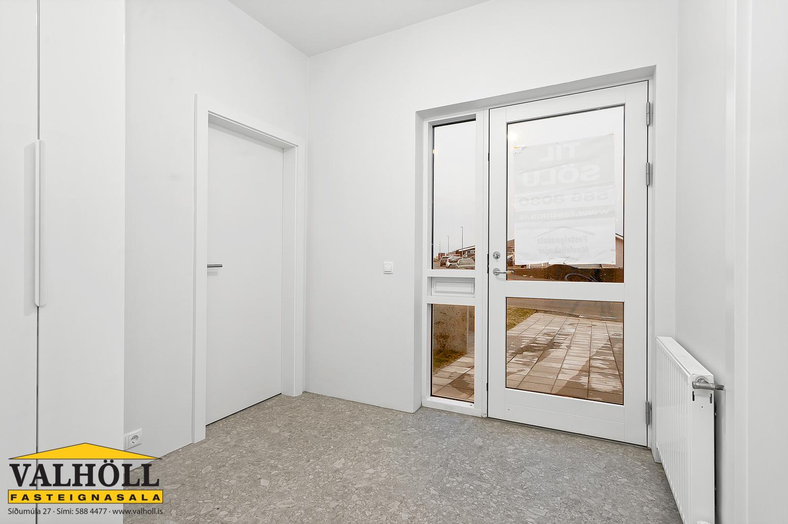 Forstofa: með fataskáp og flísum á gólfi. Frá forstofu er innangengt inn í bílskúr og geymslu / herbergi.